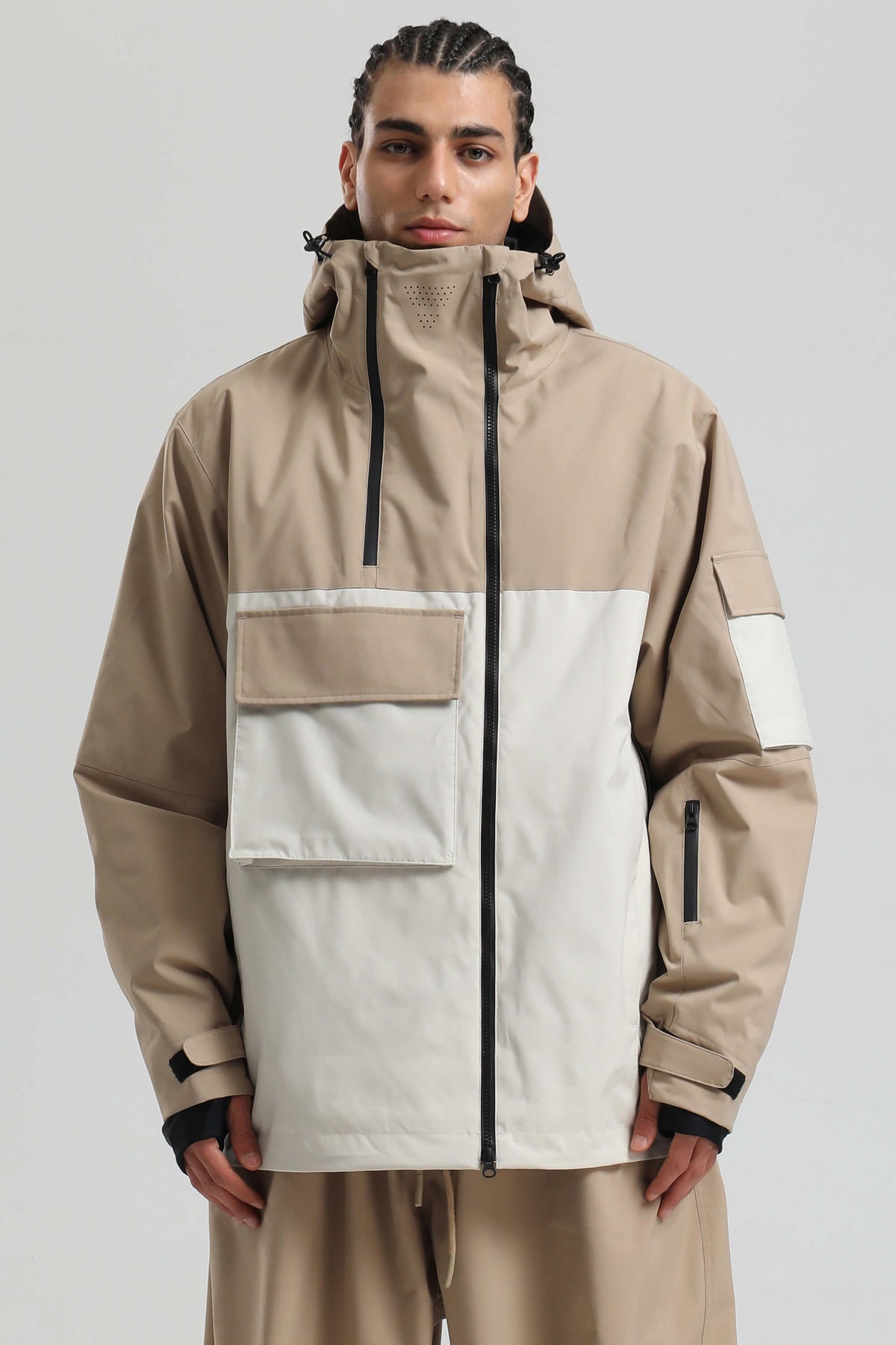 Men's Khaki & White Asym-Zip Utility Pocket Waterproof Snow Jacket