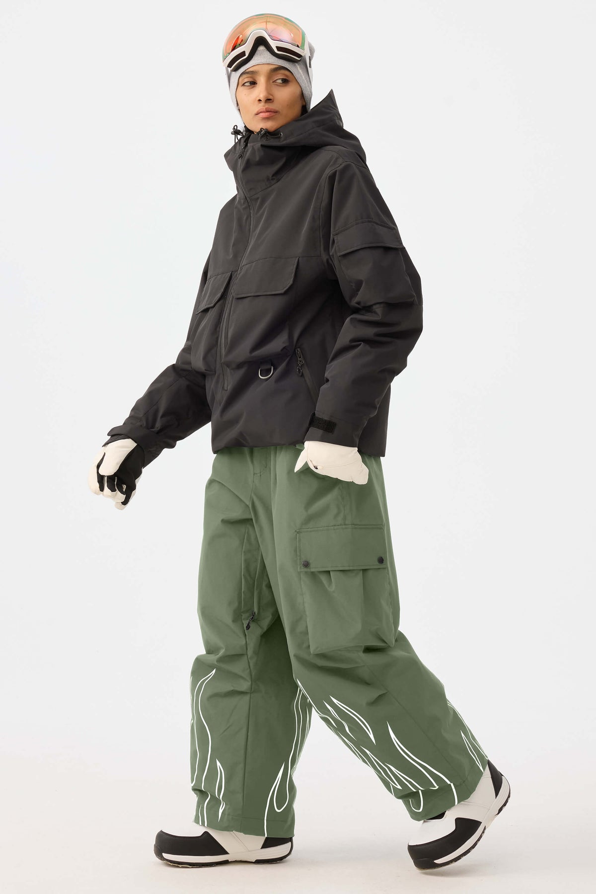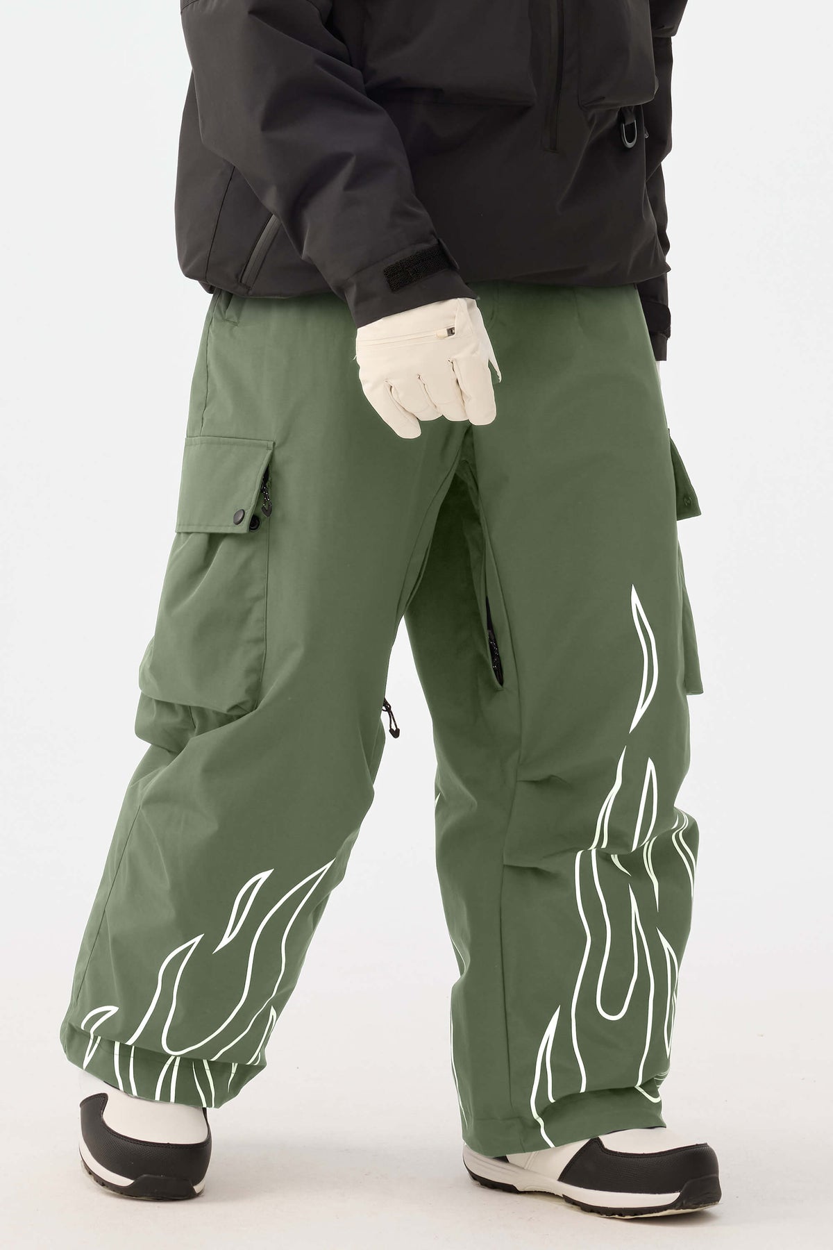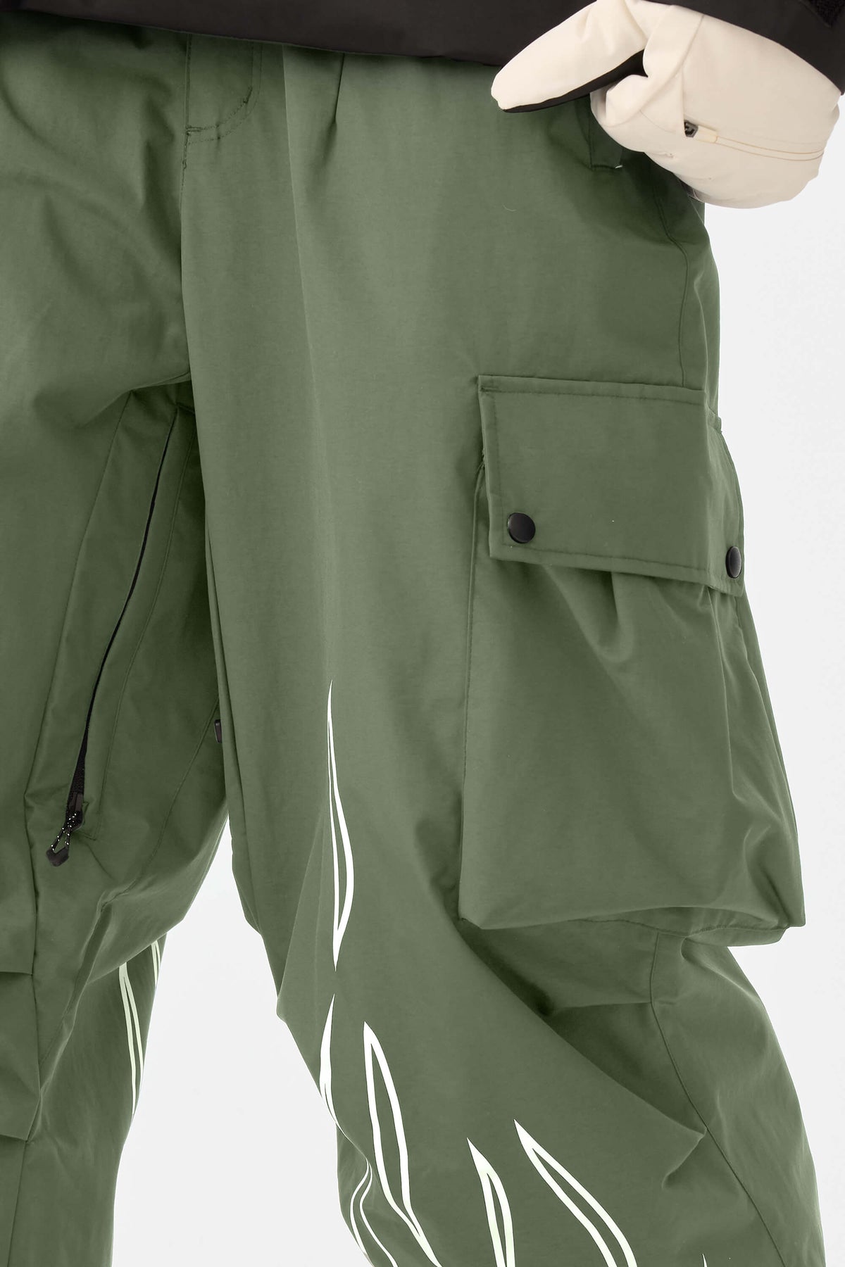 Dámské khaki reflexní kalhoty s plamenným potiskem
