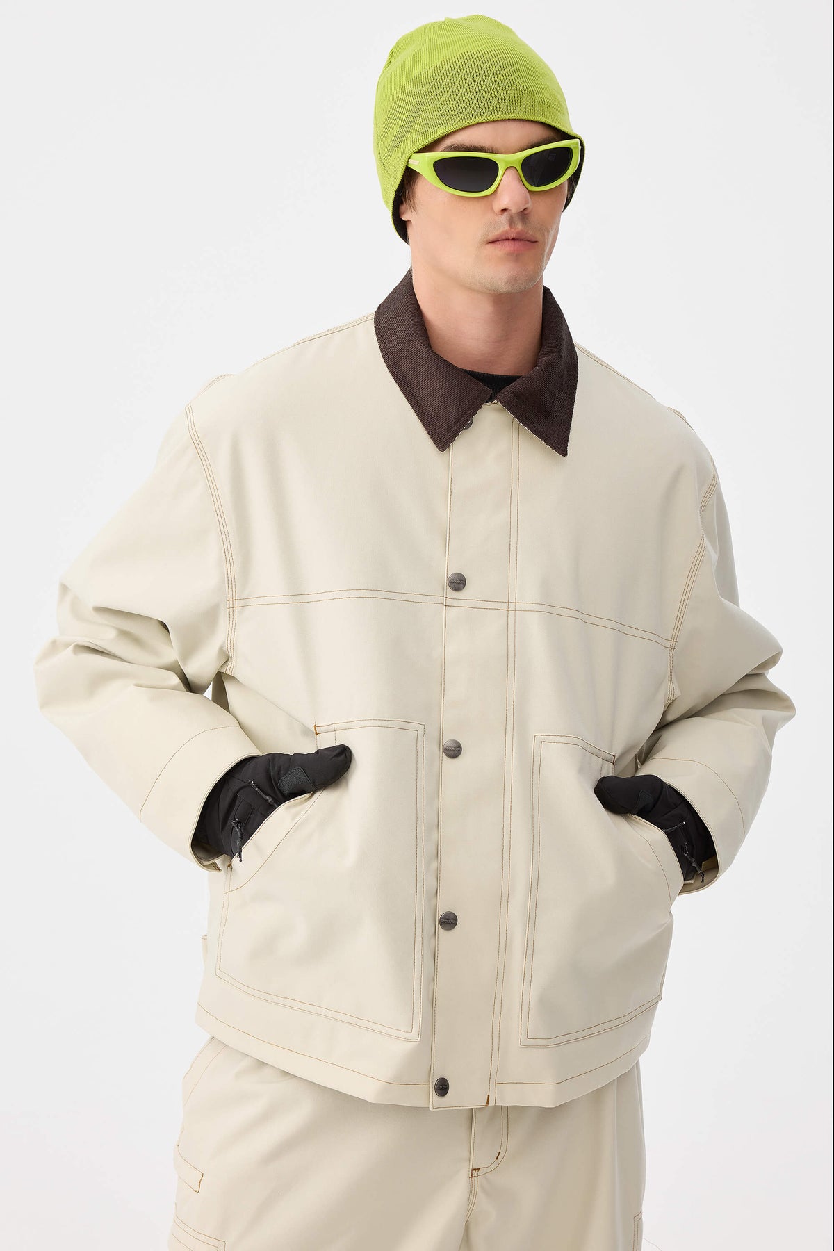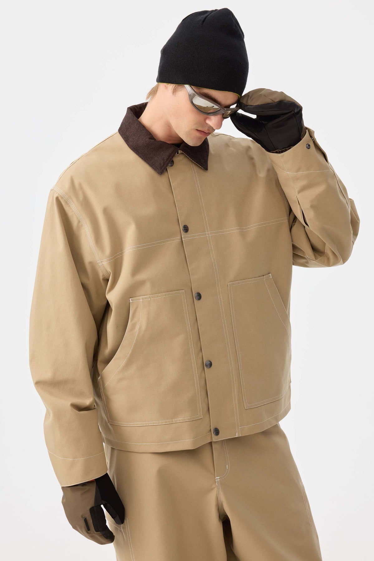 Denne snejakke har et rent snit og en struktur, der blander retro arbejdstøj med pisteklar ydeevne. Dens vandtætte yderlag og lette, quiltede for holder dig tør og komfortabel, mens corduroy-kraven og kontrastsyningerne tilføjer raffineret tekstur til både piste- og bybrug.