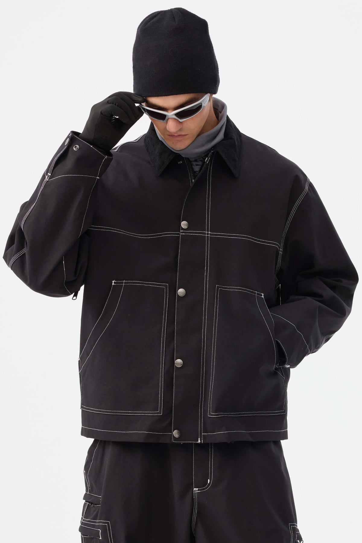 • Fuld lynlås foran med metalknaplukning