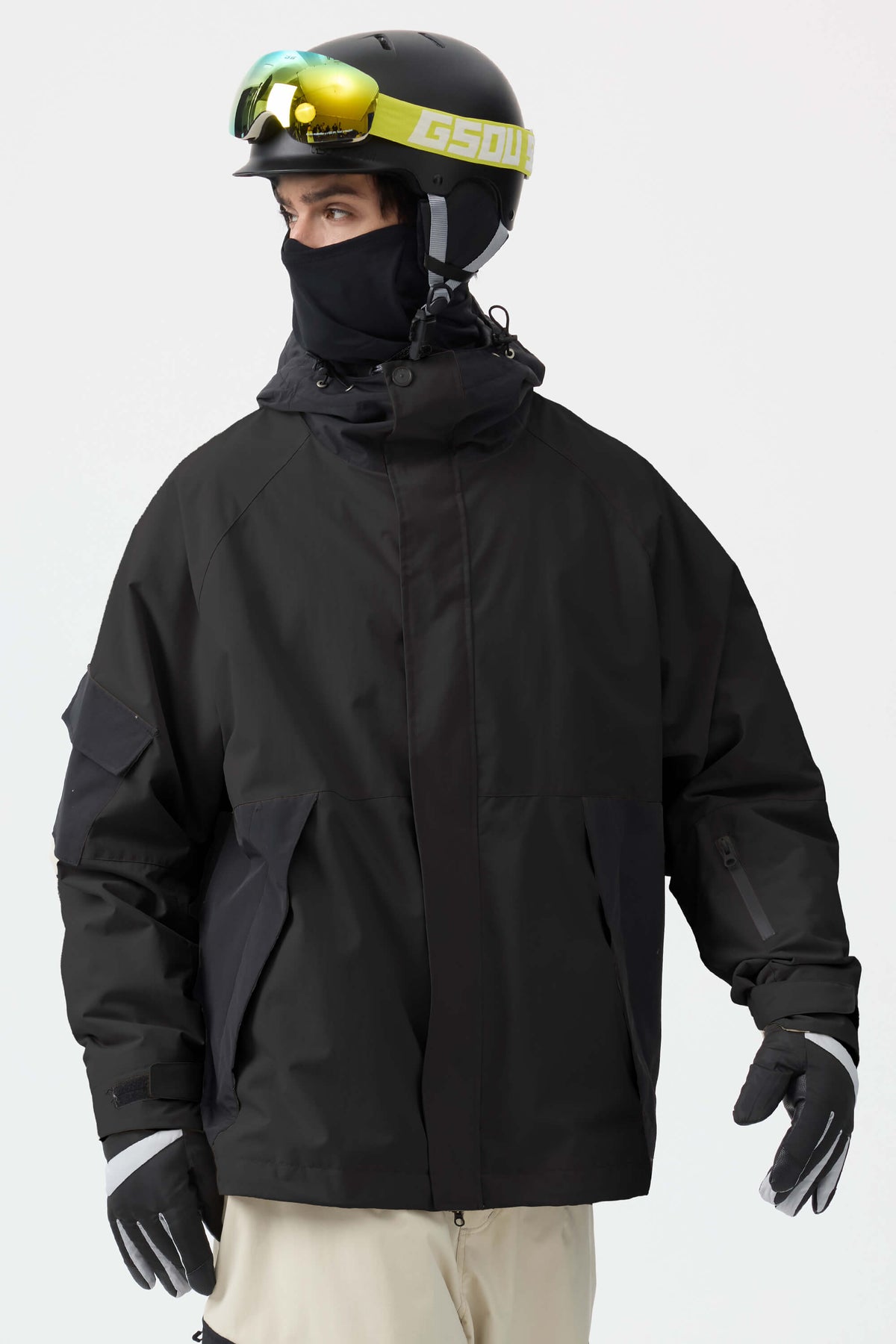 Dunkelgrüne Schneejacke für Herren mit Raglanärmeln und Farbblockdesign, wasserdicht und atmungsaktiv