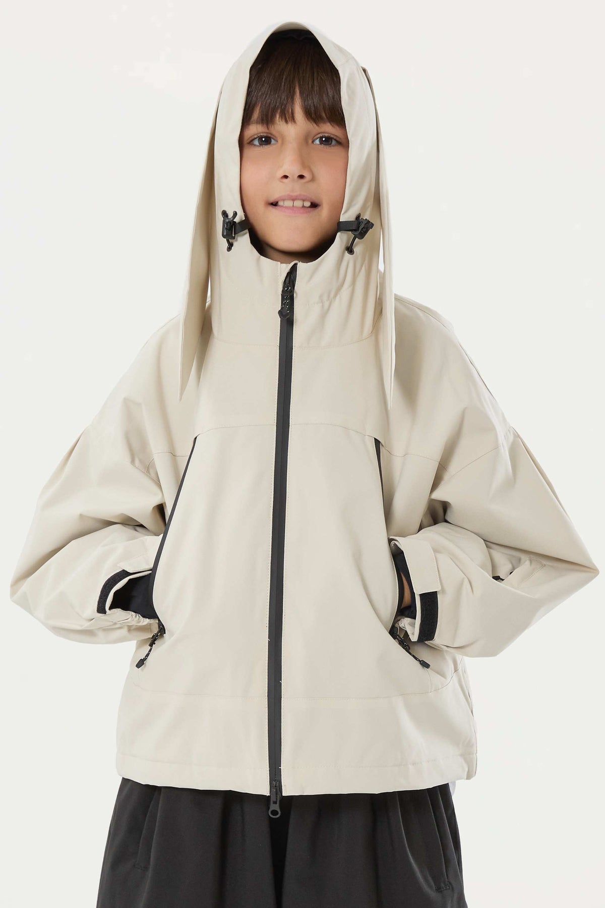 Off-White wasserdichte, isolierte Schneejacke mit abnehmbarer Kapuze und Ohrenklappen für Jungen
