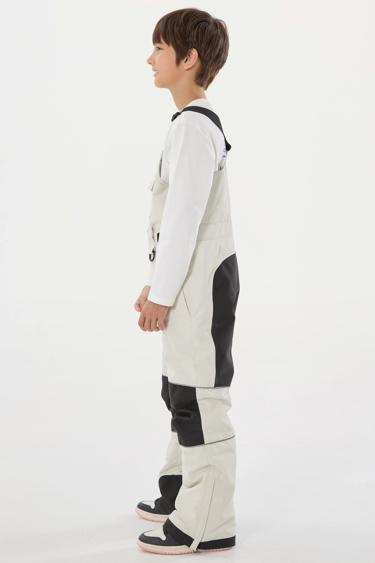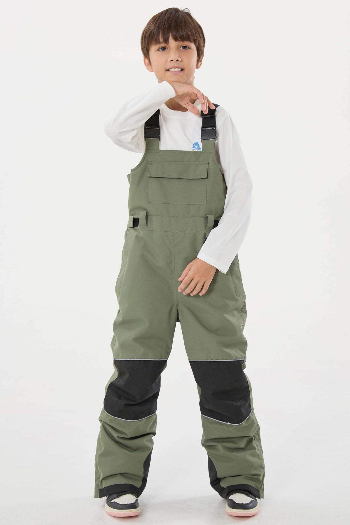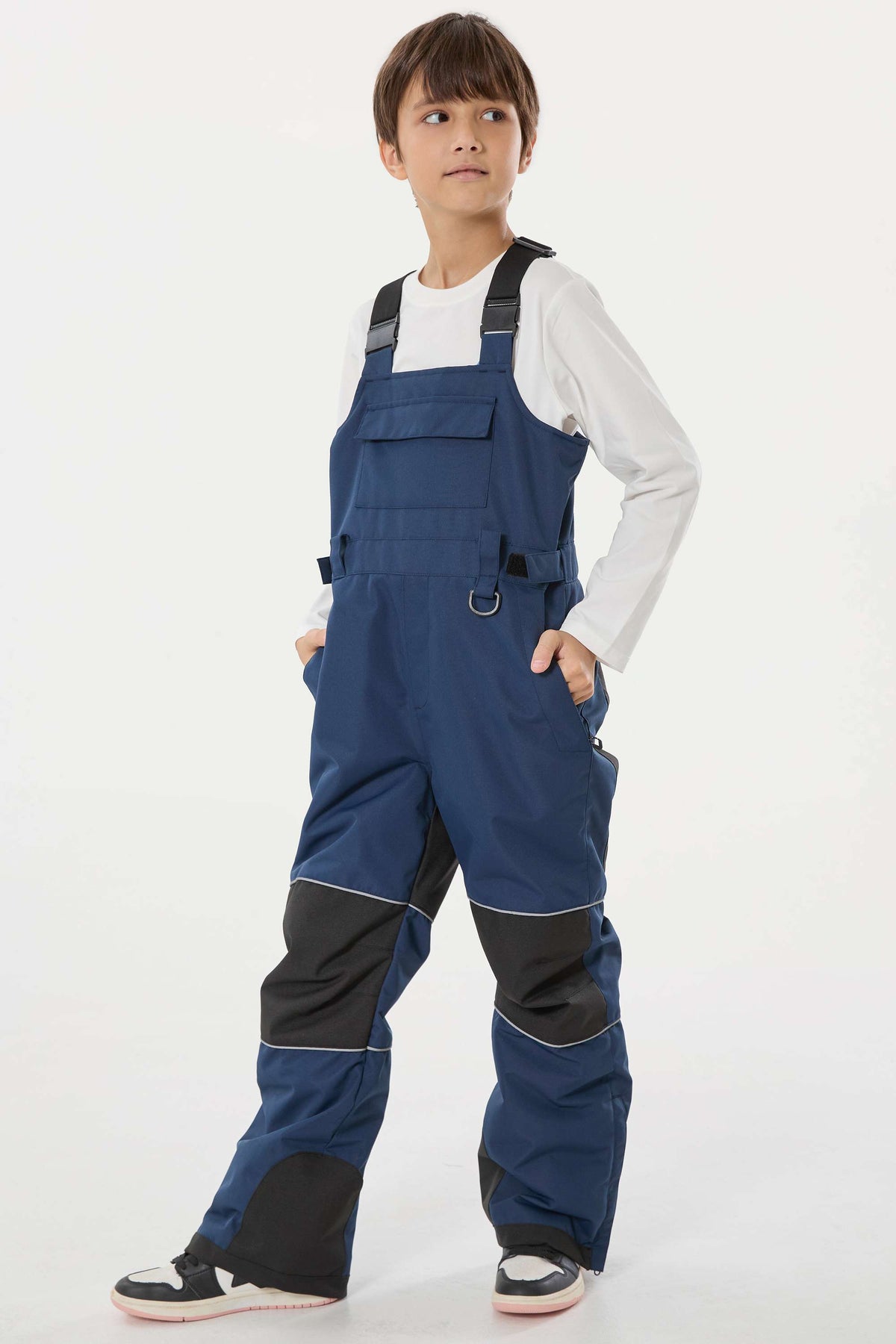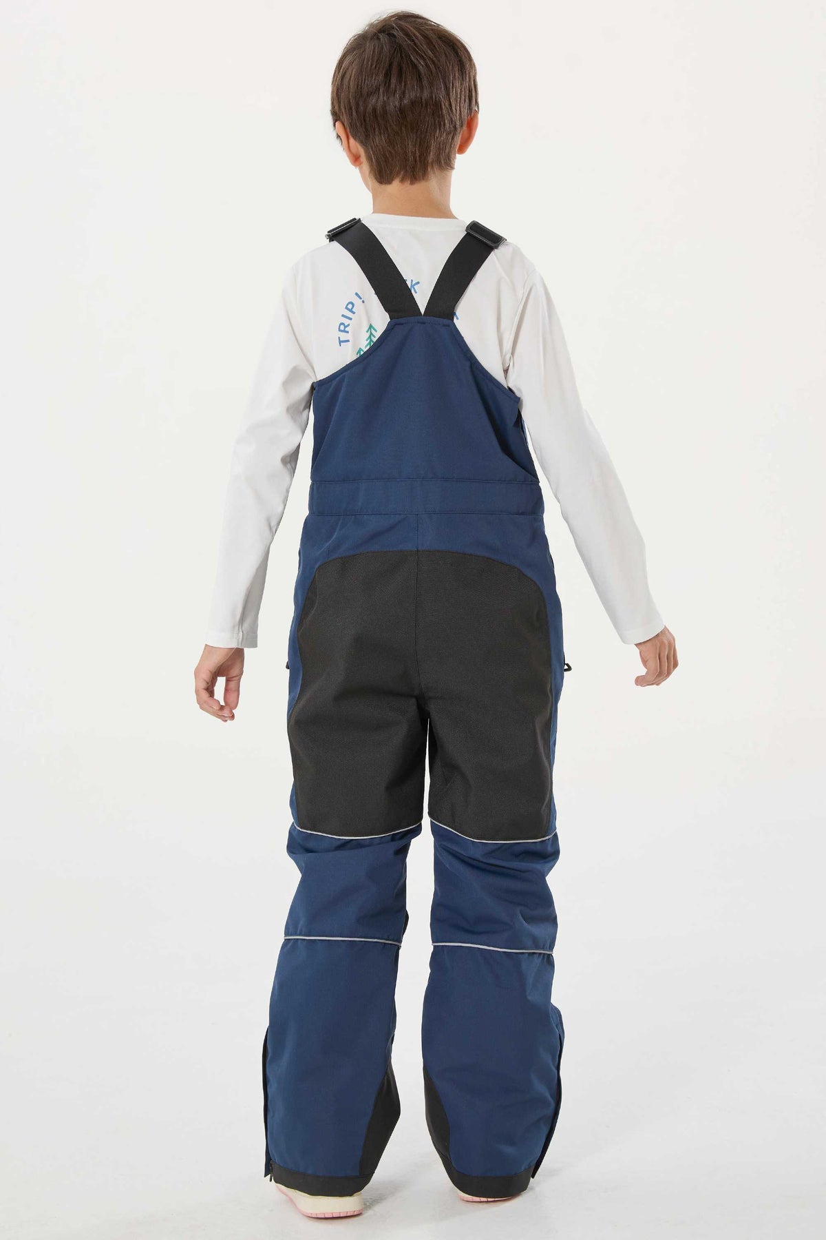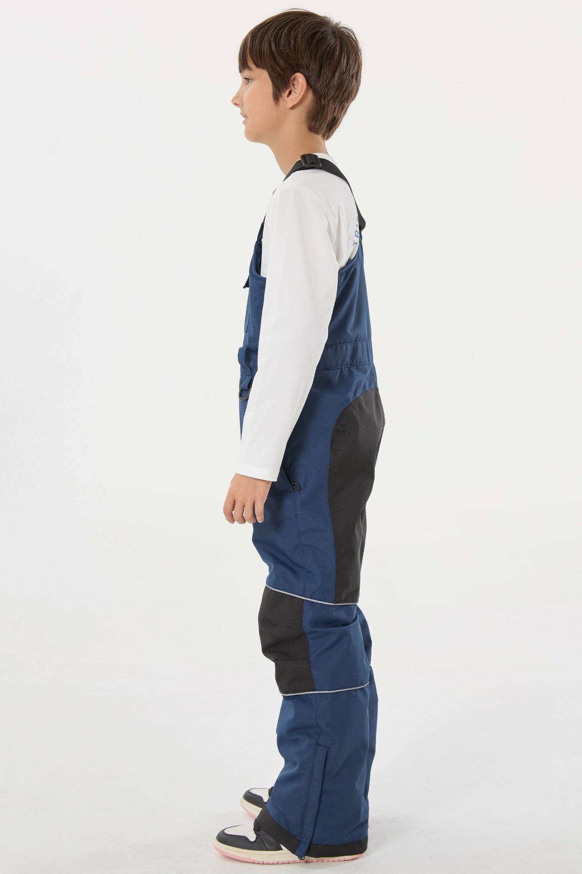 Schneelatzhose für Kinder mit verstellbaren Trägern und seitlichen Klettverschlüssen für einen bequemen Sitz. Verstärkter Gesäß- und Kniebereich, Reflektorstreifen, rutschfeste Gamaschen und seitliche Reißverschlüsse an den Waden sorgen dafür, dass die Kinder sicher sind und bereit für den Schneespaß.