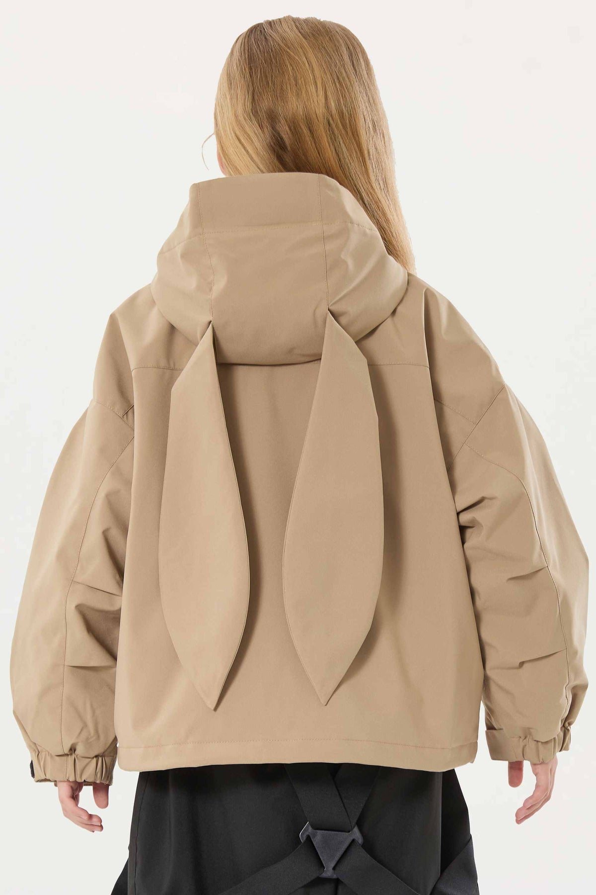 Khakifarbene, wasserdichte, isolierte Schneejacke mit abnehmbarer Kapuze und Ohrenklappen für Mädchen