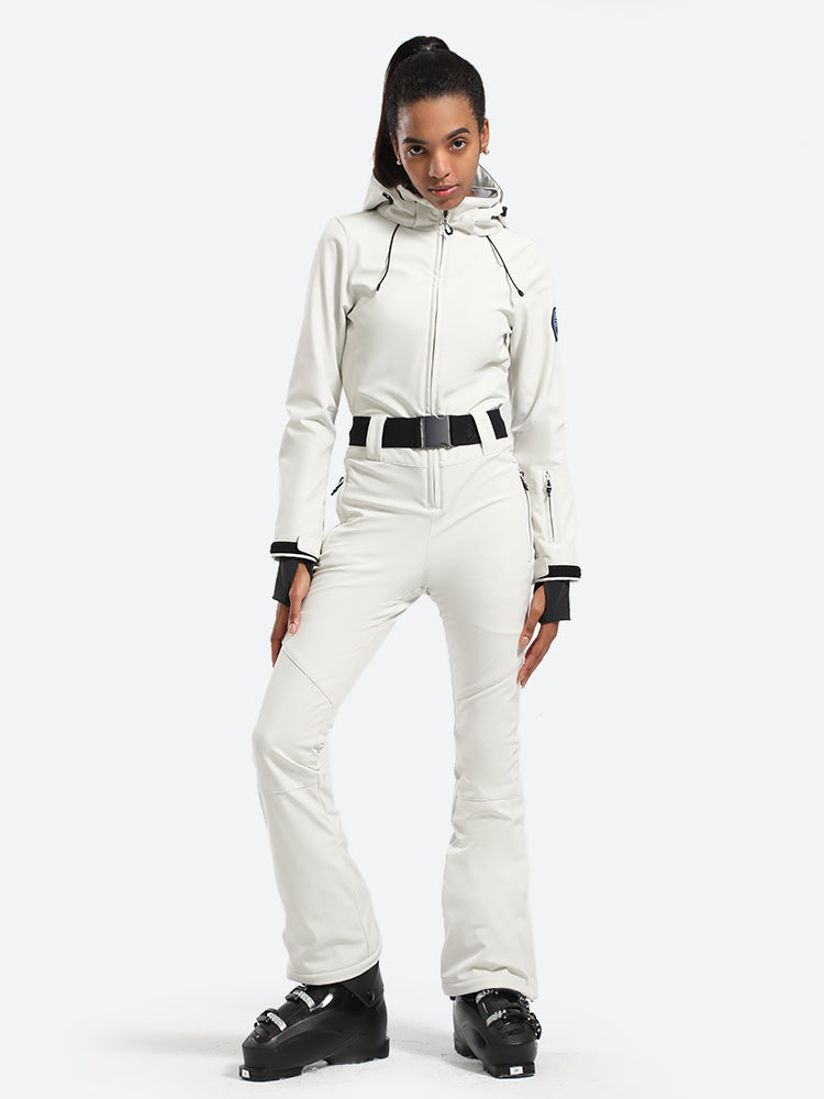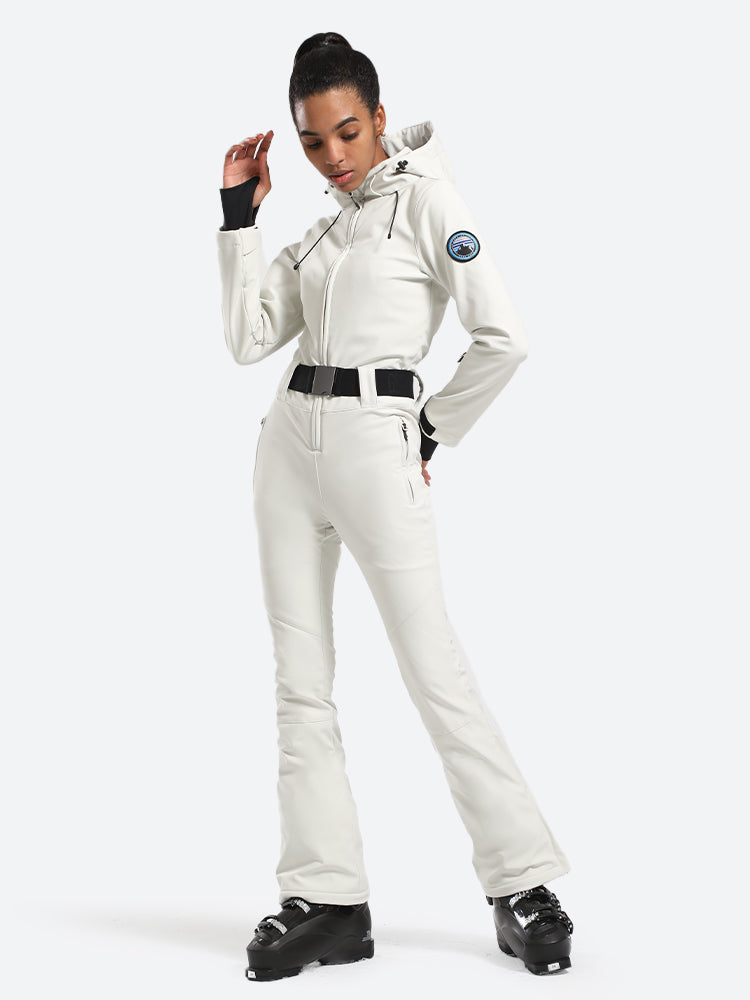 Der einteilige Skianzug von GSou Snow bietet unvergleichlichen Komfort und Bewegungsfreiheit, ergänzt durch praktische Funktionen wie eine abnehmbare Kapuze, zwei Oberschenkeltaschen, eine Skipasstasche am Bündchen und einen verstellbaren Bund.