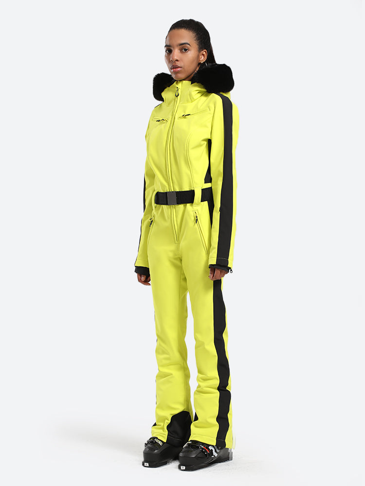 Der einteilige Skianzug von GSou Snow mit schmaler Passform verfügt über eine abnehmbare Kunstfellkapuze und bietet so vielfältige Styling-Möglichkeiten. Das dehnbare Material ermöglicht uneingeschränkte Bewegungsfreiheit beim Skifahren. Ein weicher Kinnschutz, Innentaschen, Ärmeltaschen und wasserdichte Reißverschlüsse machen diesen Skianzug zu einer hervorragenden Wahl.