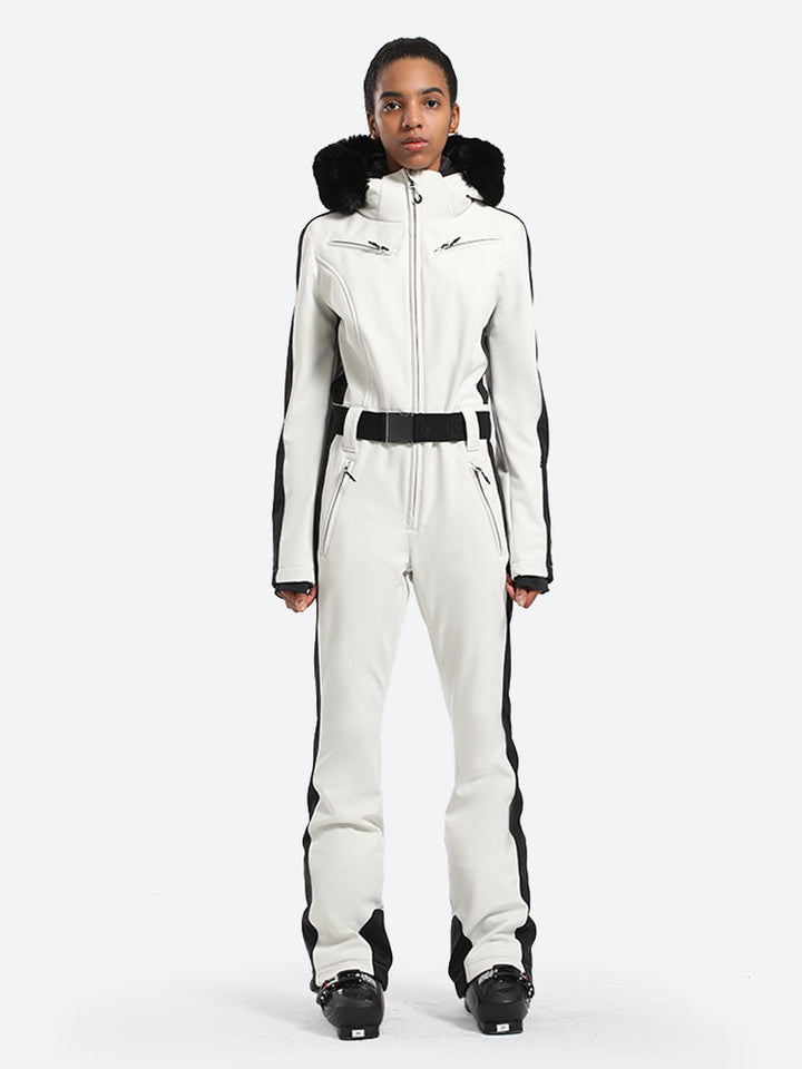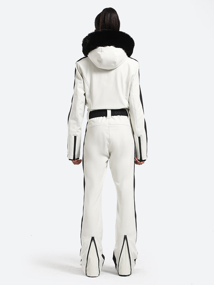 Slim-Fit-Skianzug aus Stretch-Kunstpelz in Weiß für Damen