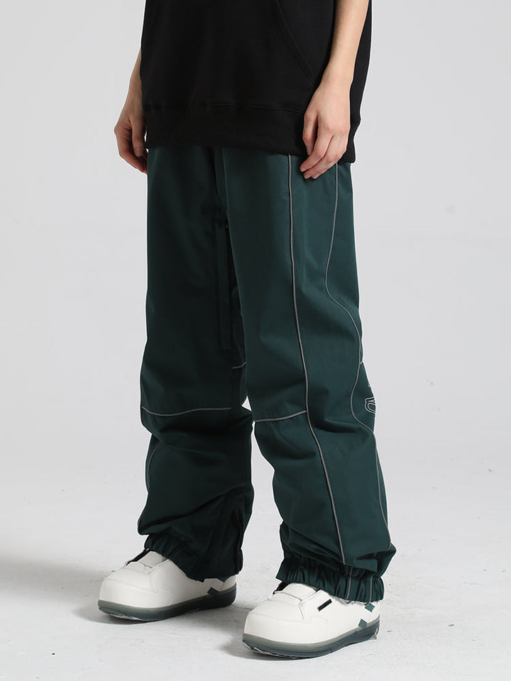 Dunkelgrüne Schneehose mit geradem Bein und Kontrastnähten für Herren