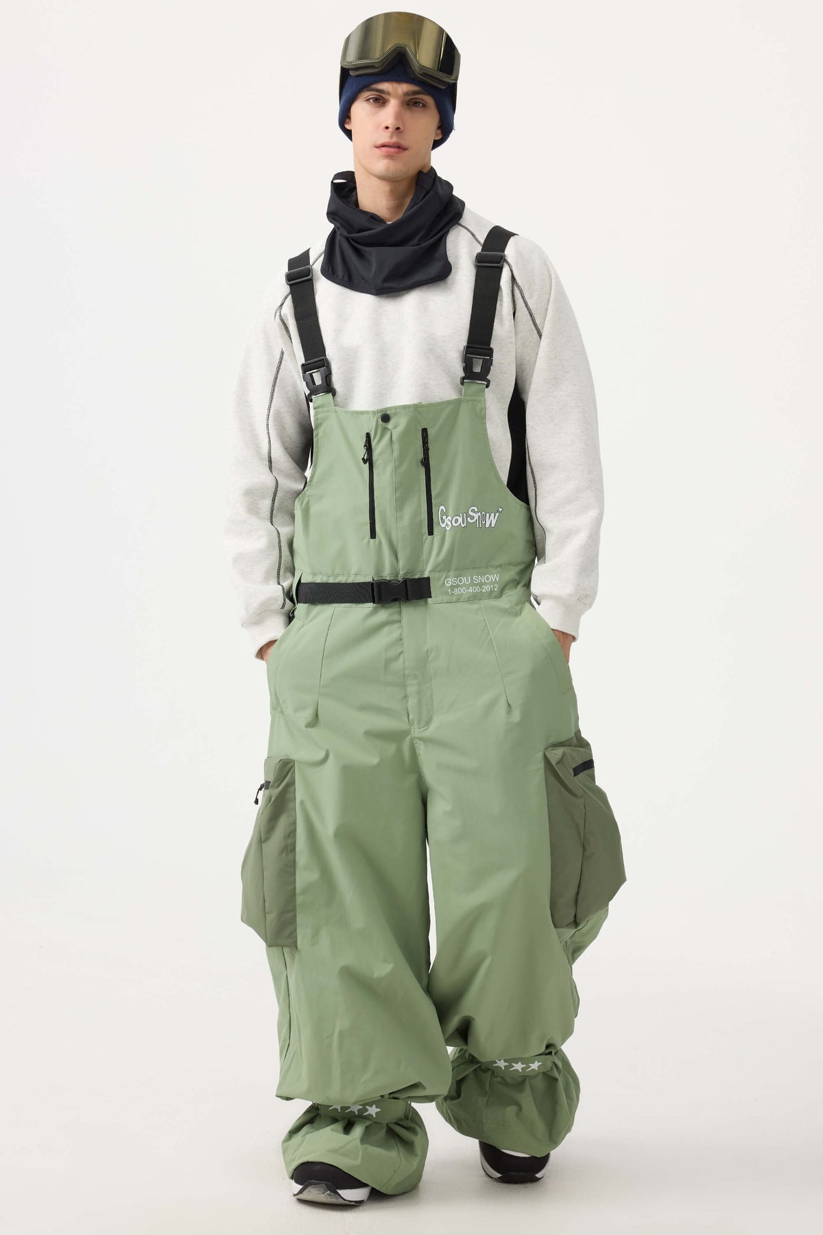 Mintgrüne Schneelatzhose im Workwear-Stil für Herren mit integriertem Gürtel