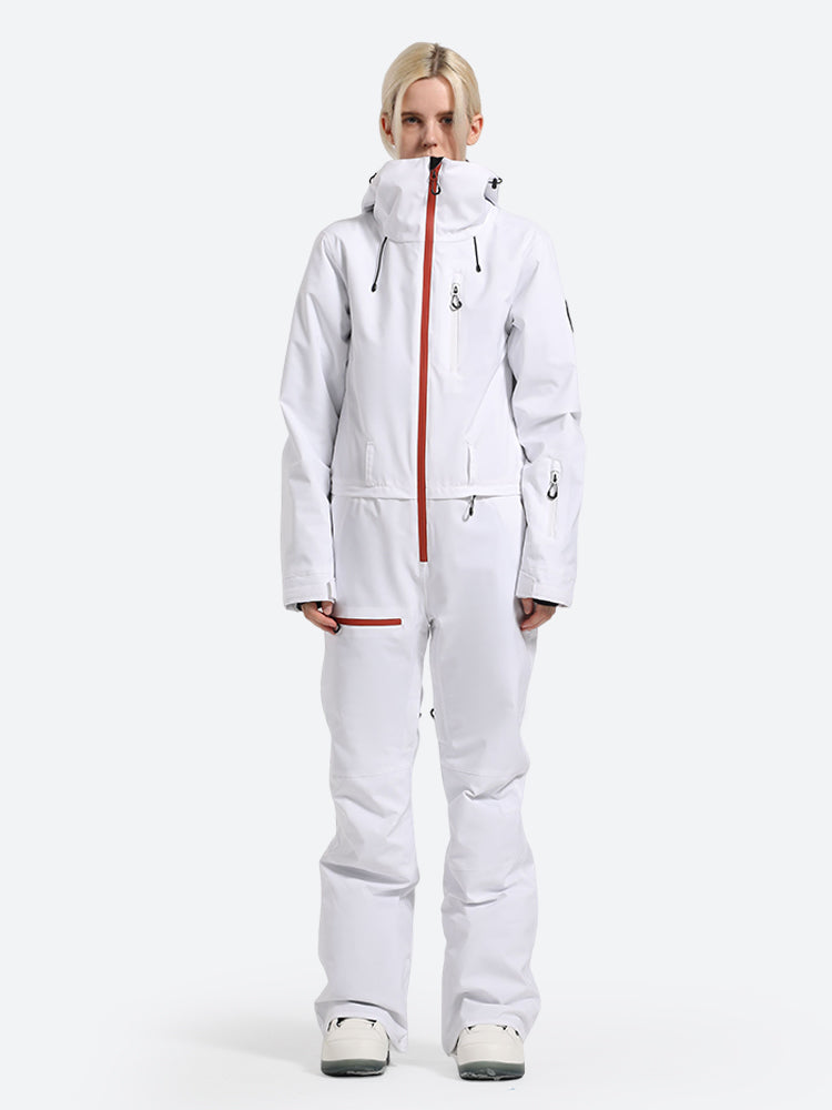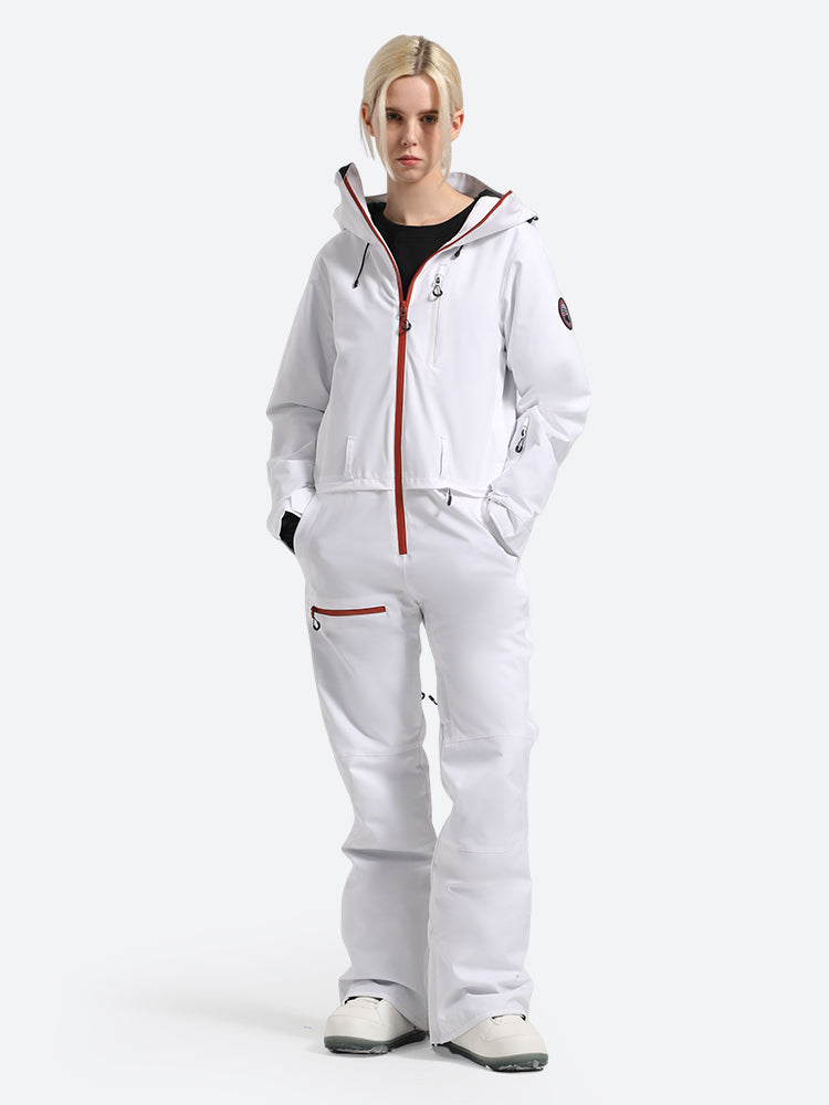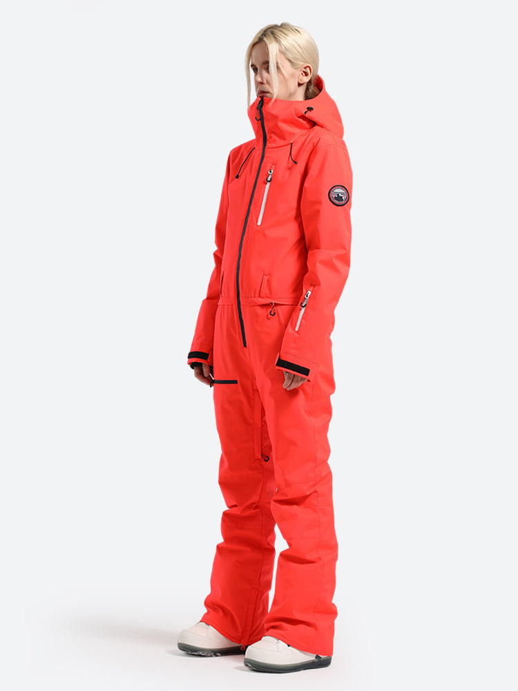 Neonroter, wasserdichter und atmungsaktiver einteiliger Skianzug für Damen