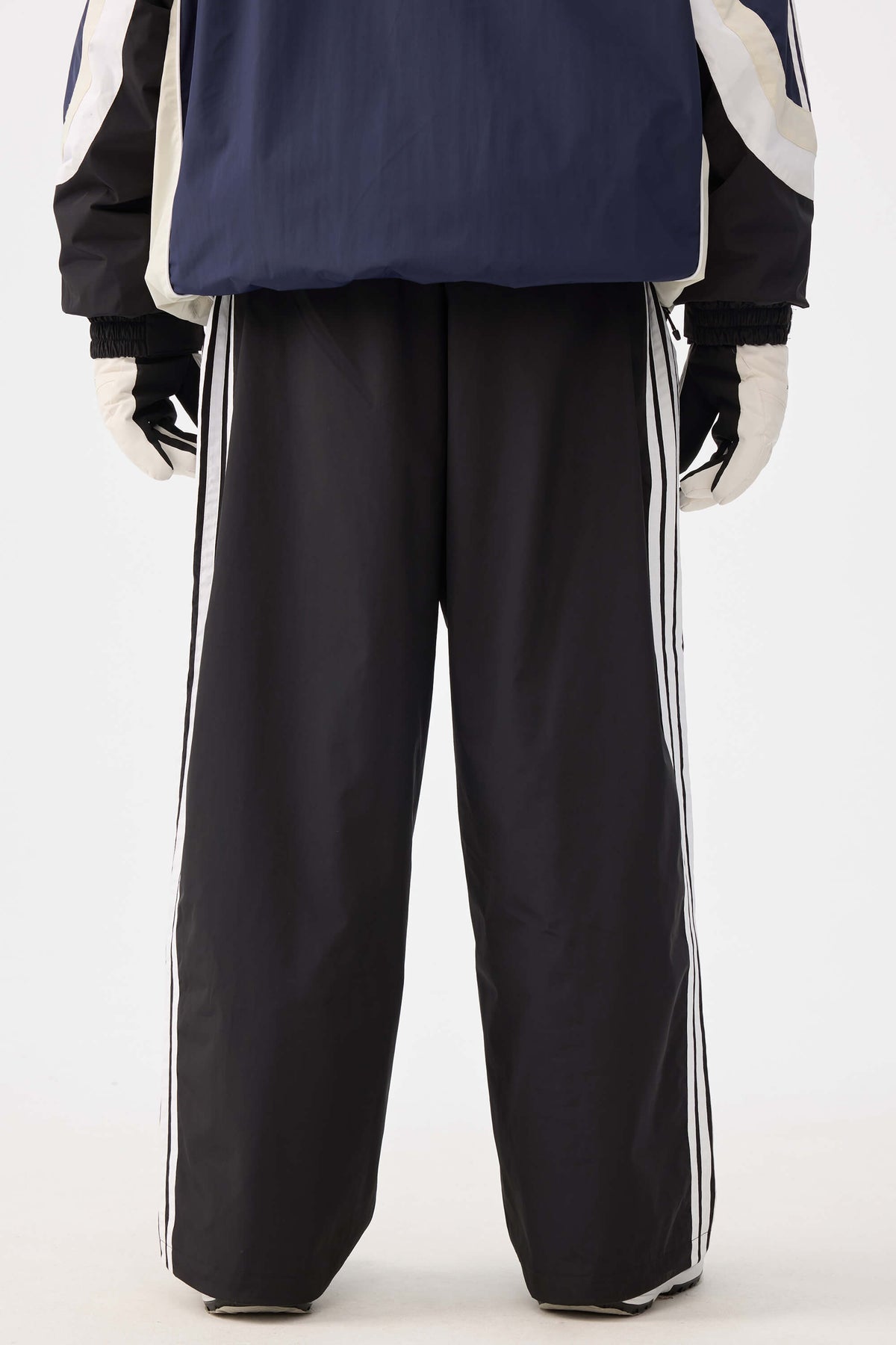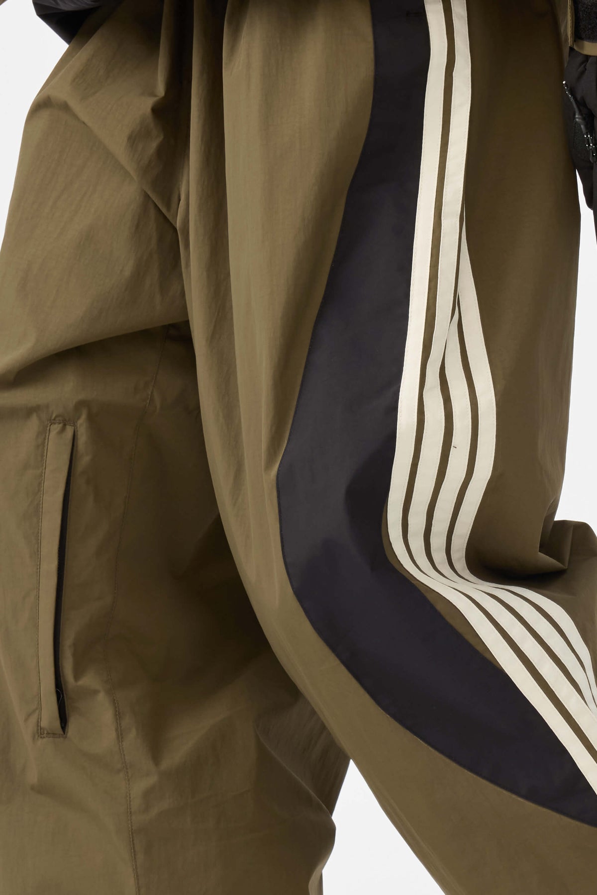 Die lockere Passform und der elastische Kordelzugbund sorgen für Komfort und Bewegungsfreiheit. Seitliche Kontraststreifen und geschwungene Color-Blocking-Einsätze verlängern optisch die Beine und verleihen der Hose einen sportlichen, urbanen Look. Gefertigt aus strapazierfähigem Nylongewebe und mit durchgehenden YKK-Reißverschlüssen für lange Haltbarkeit.