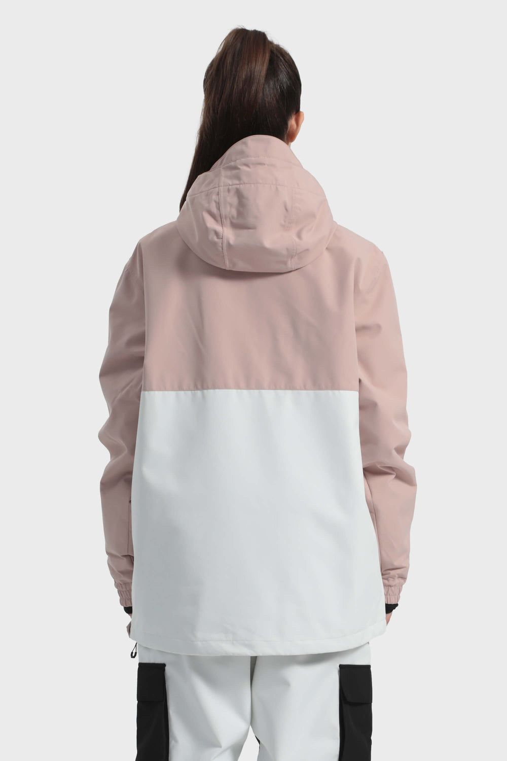 Wasserdichter Schneeanorak für Damen in Pink und Weiß mit lockerer Passform und mehreren Druckknöpfen