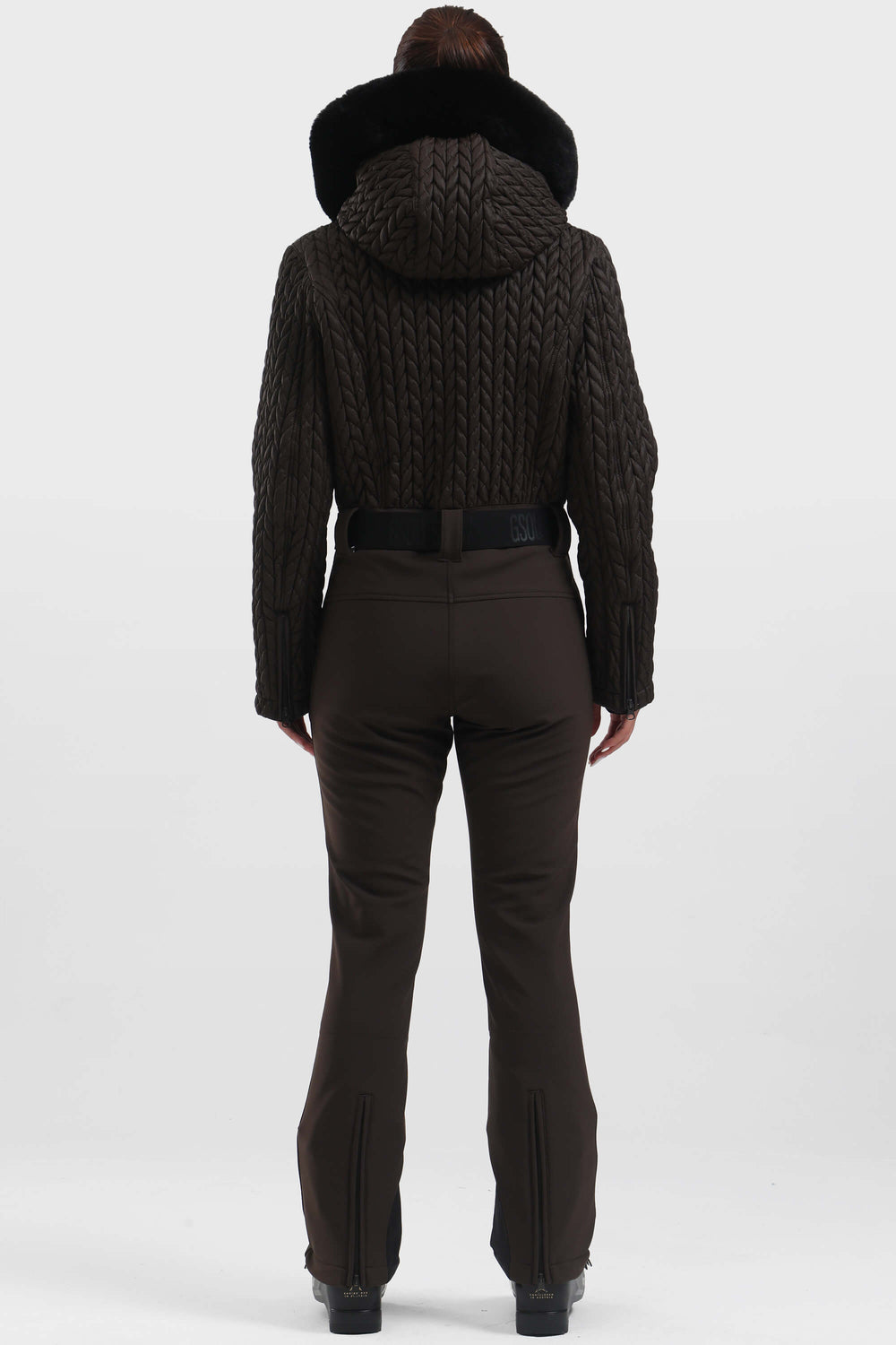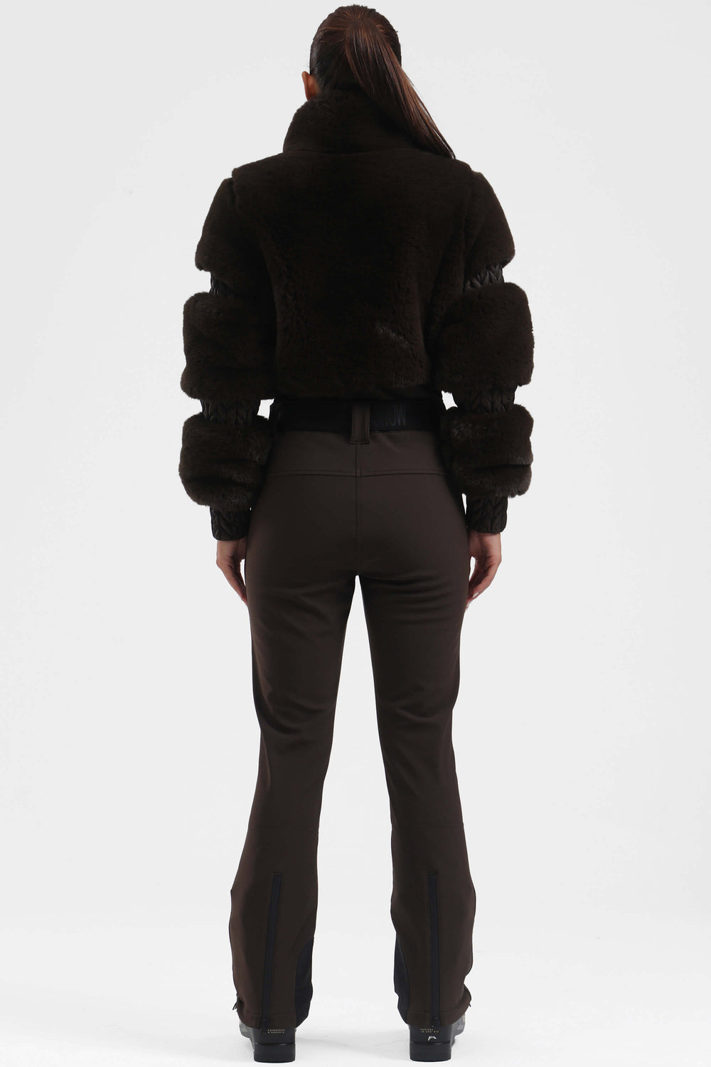 Combinaison de ski imperméable une pièce en fausse fourrure marron foncé pour femme