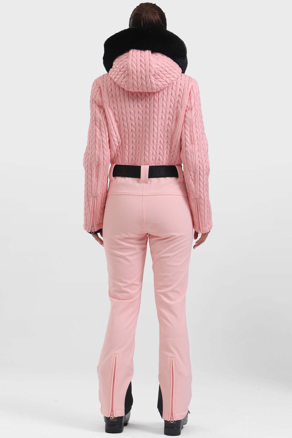 Combinaison de ski imperméable une pièce en fausse fourrure rose froncée pour femme