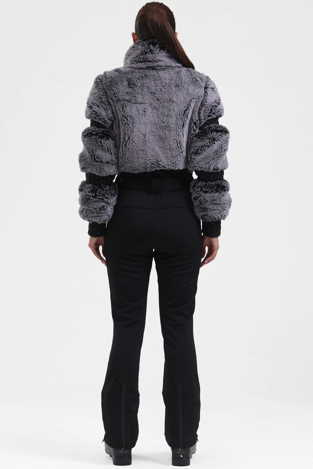 Combinaison de ski imperméable une pièce en fausse fourrure grise pour femme