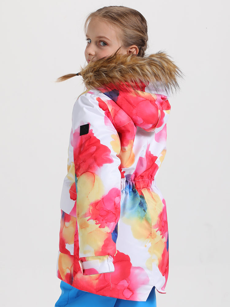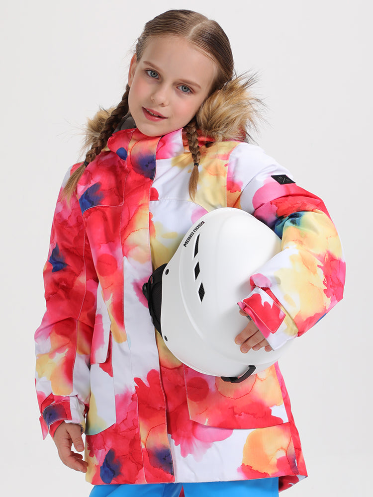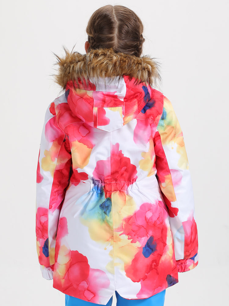 Gsou Snow Kid's Red Flower Winter Veste de snowboard colorée