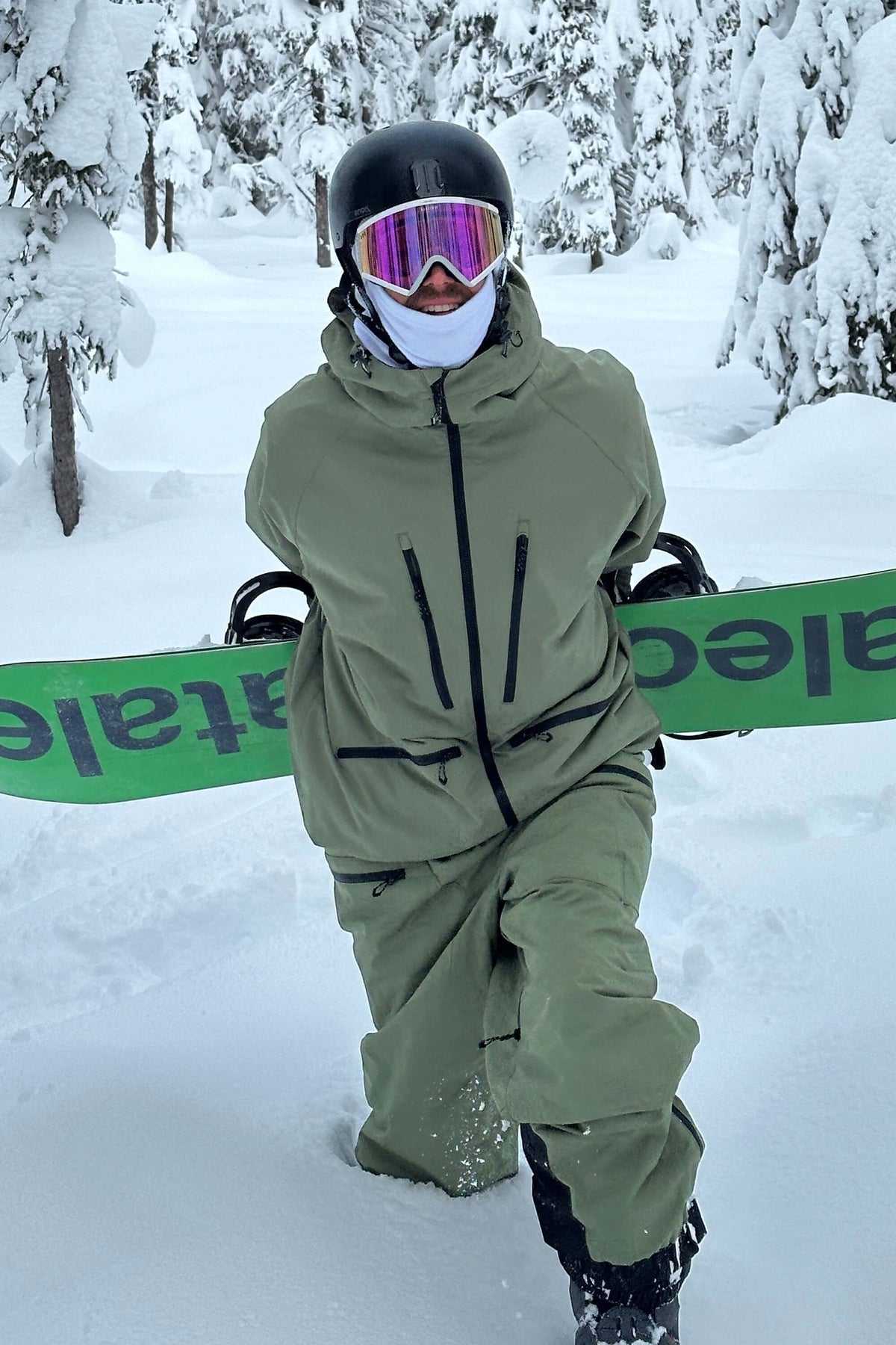 Veste de neige isolante et imperméable multifonctionnelle vert armée pour homme