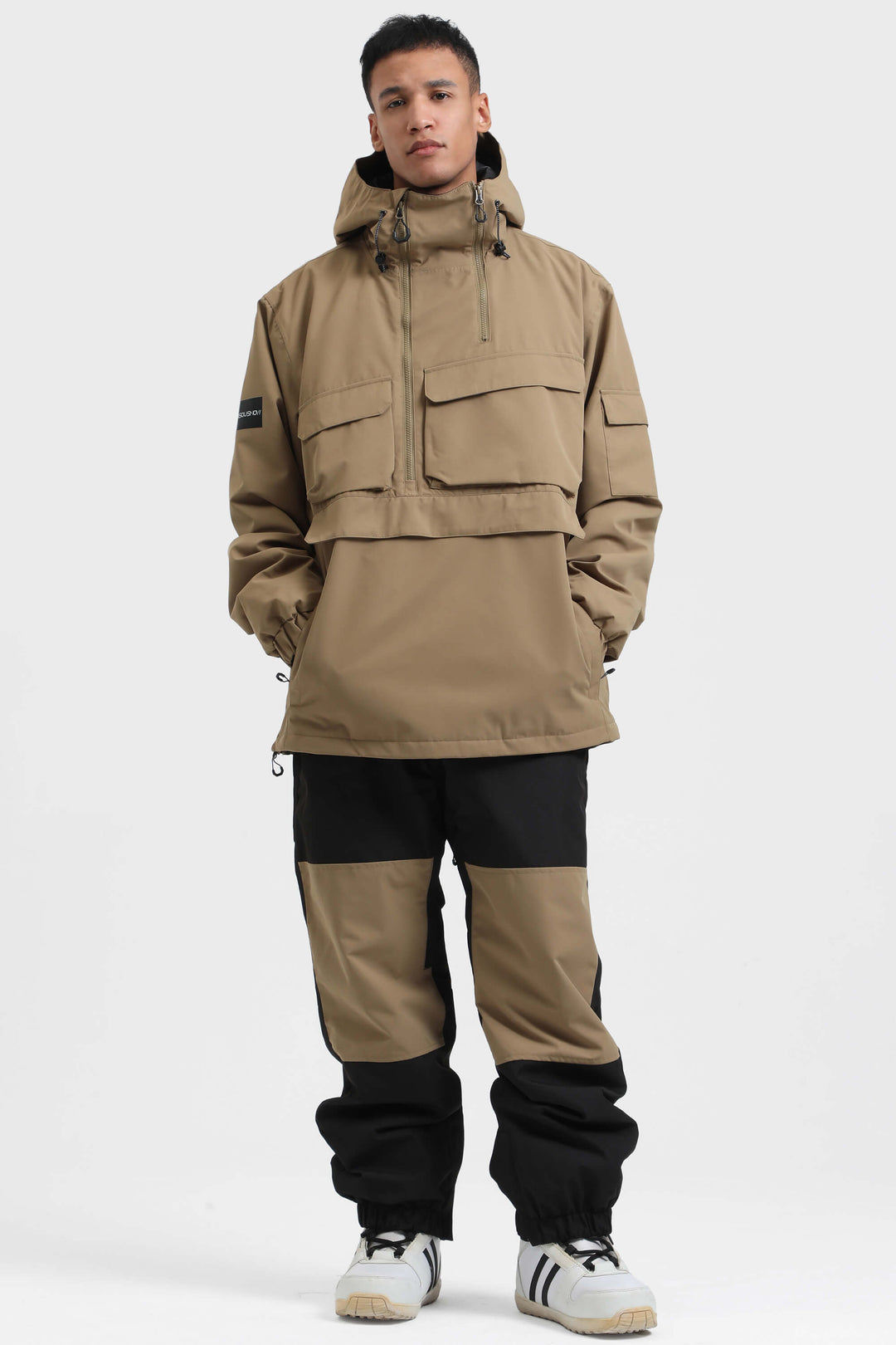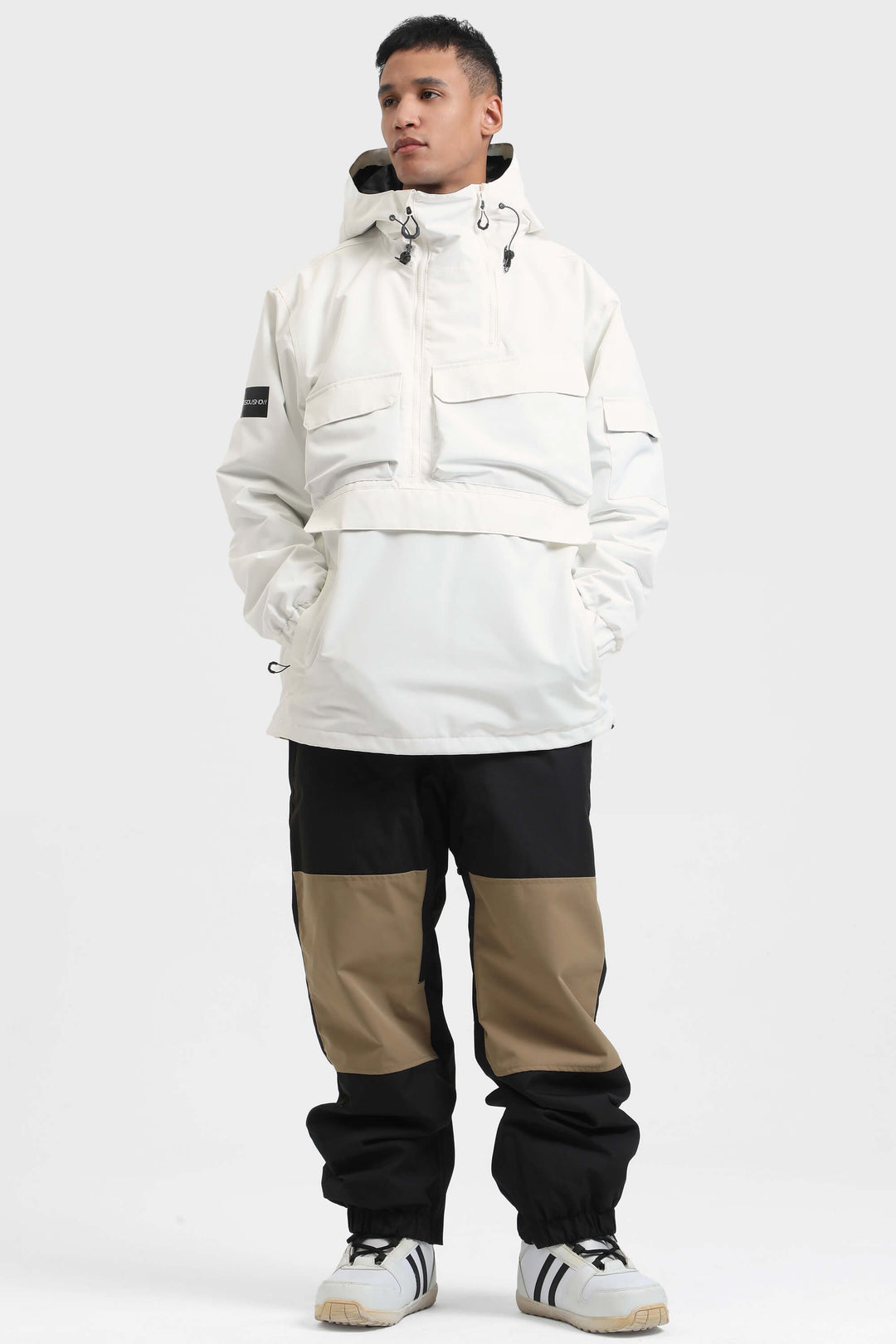 Anoraks de neige imperméables et isolés pour homme, blancs, avec poche kangourou asymétrique