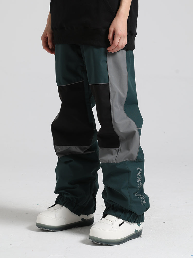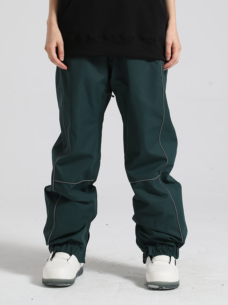 Pantalon de neige coupe droite vert foncé à coutures contrastées pour femme