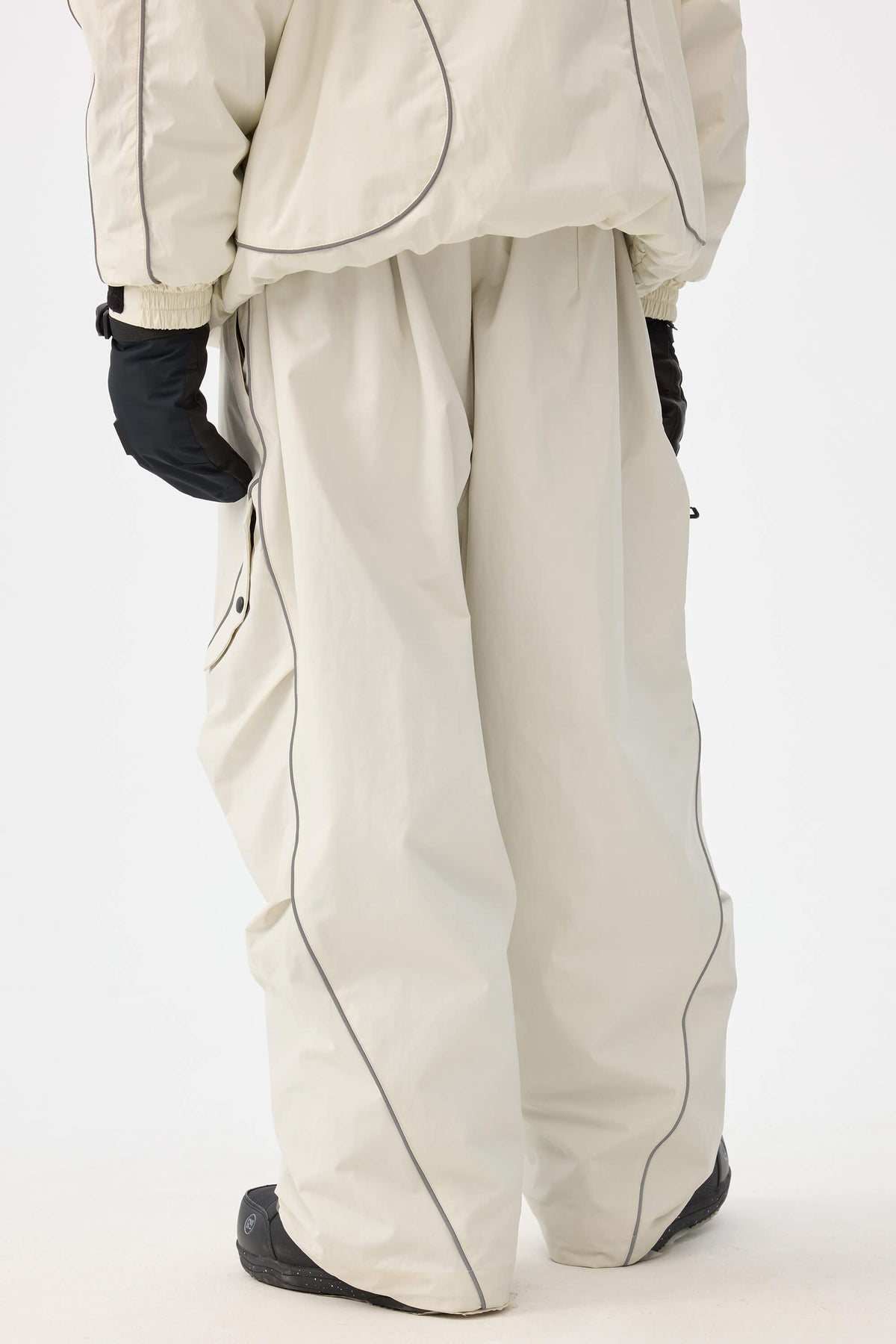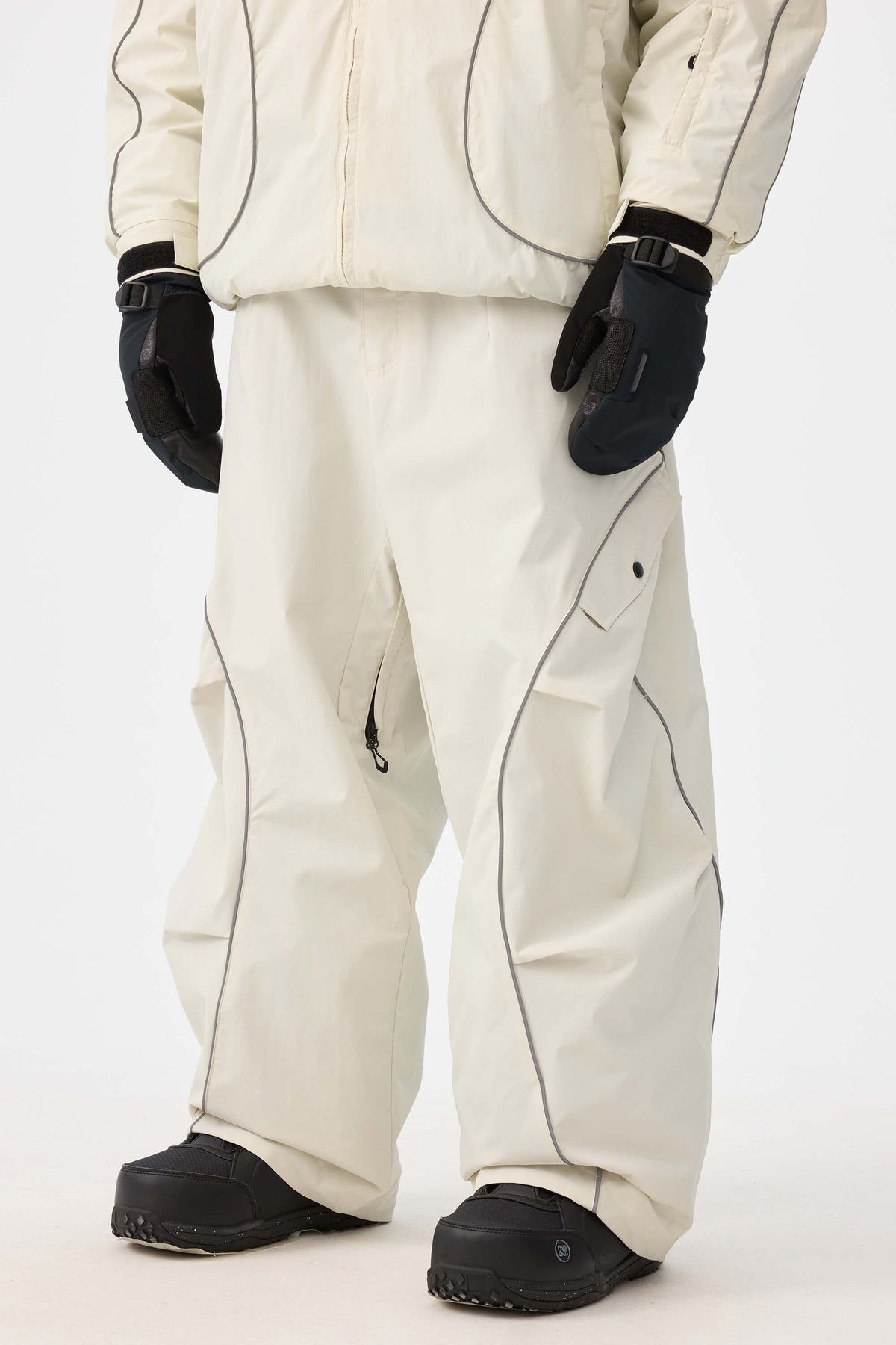 Heren off-white duurzame reflecterende streep baggy sneeuwbroek