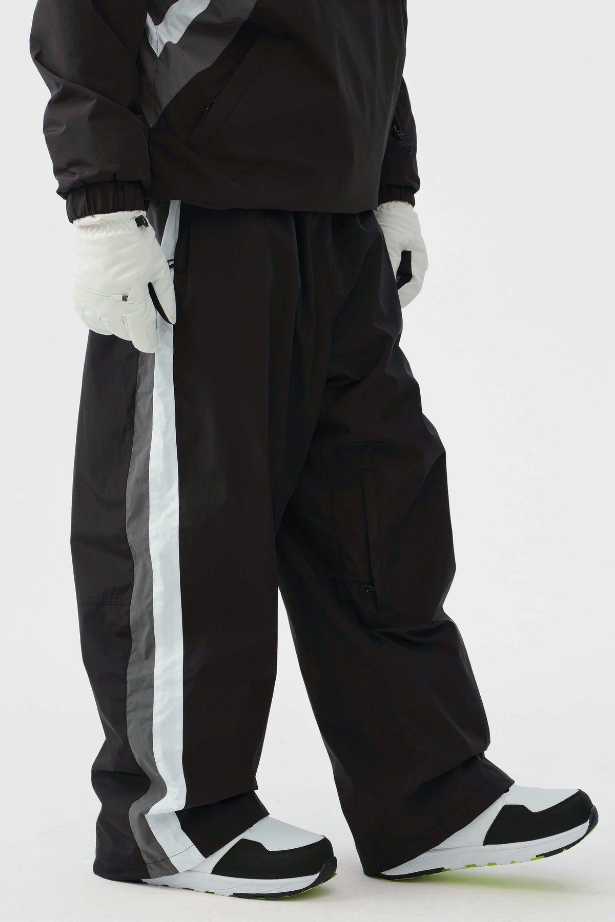 Stap in de spotlight met deze retro colorblock-sneeuwbroek uit de jaren 90, waar een gedurfde vintage stijl en moderne functionaliteit samenkomen voor op de piste en in de stad. Het oversized silhouet, gedefinieerd door levendige zijpanelen, wordt gecompleteerd door een verstelbare taille met een intern trekkoord en een zachte, gripvaste winddichte band voor ultiem comfort en een stevige pasvorm.