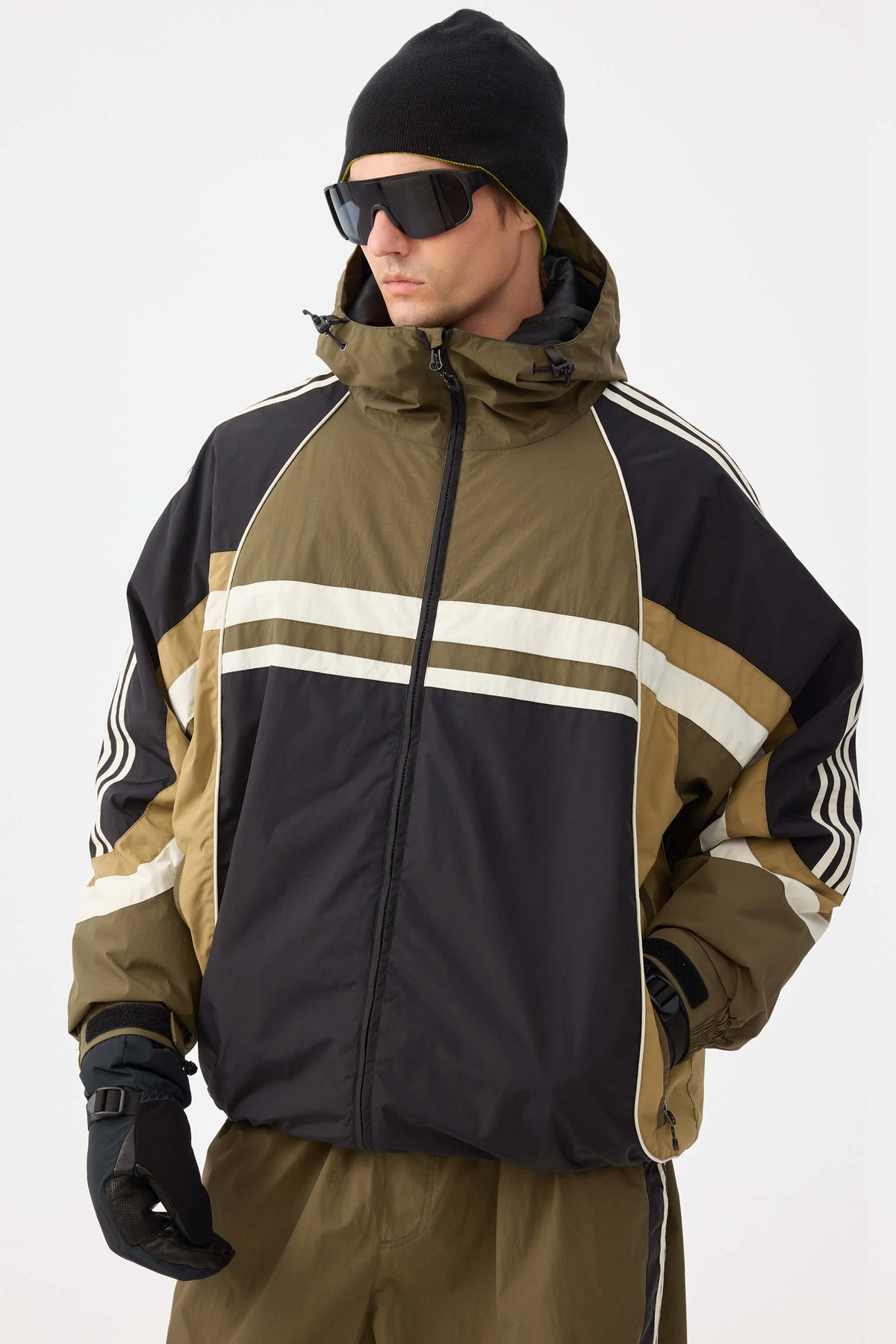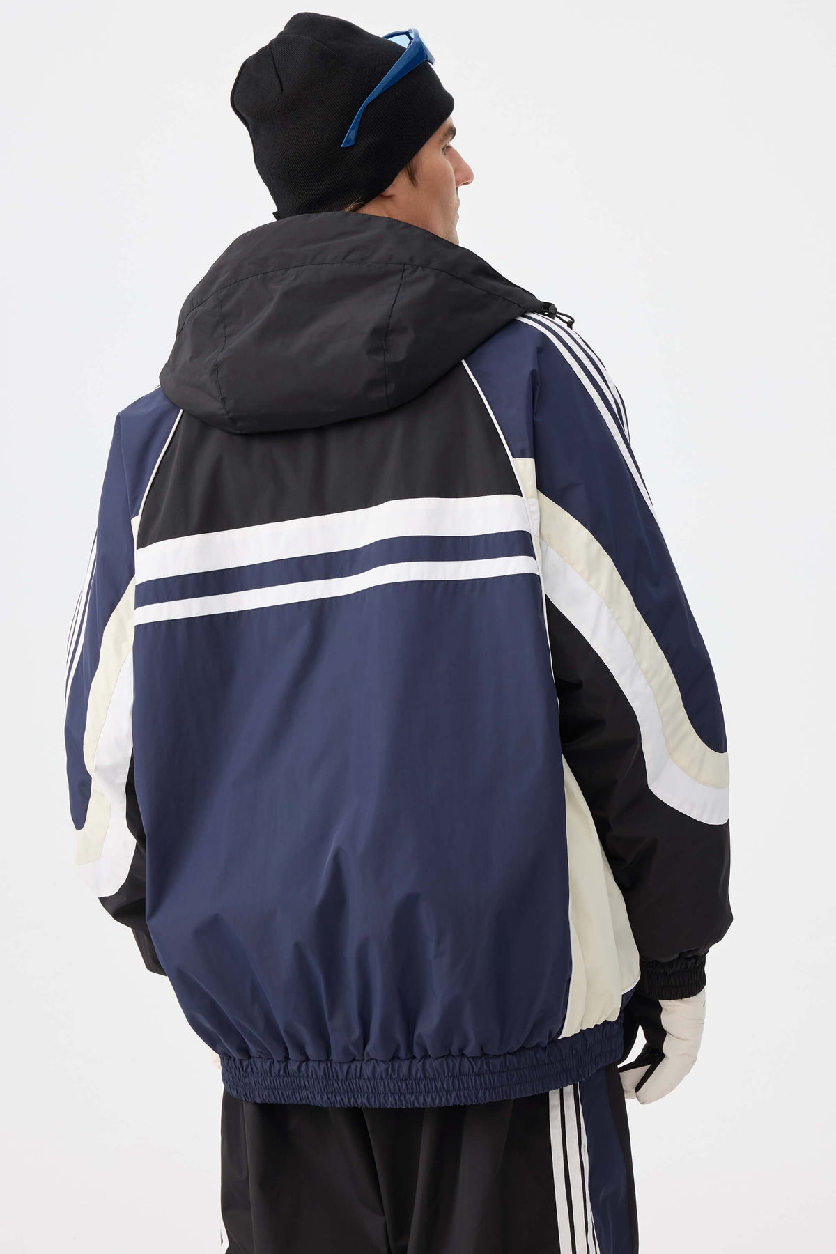 Oversized retro sportief jack met kleurblokken en mouwstrepen voor een old-school look. Voorzien van een tweewegrits en diverse zakken voor extra gebruiksgemak. Gemaakt van water- en winddicht materiaal om je comfortabel te houden op de piste en er stijlvol uit te zien daarbuiten.