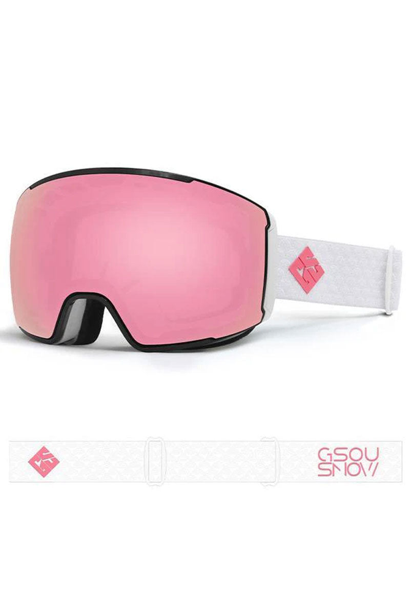 Gsou Snow Adult Pink Frameless Anti-Fog Removable Lens Ski Goggles