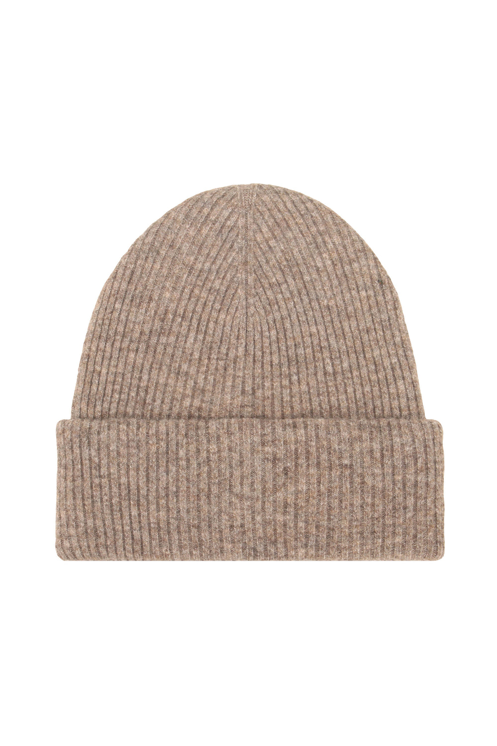 Lekka czapka beanie unisex z brązowym logo i mankietem