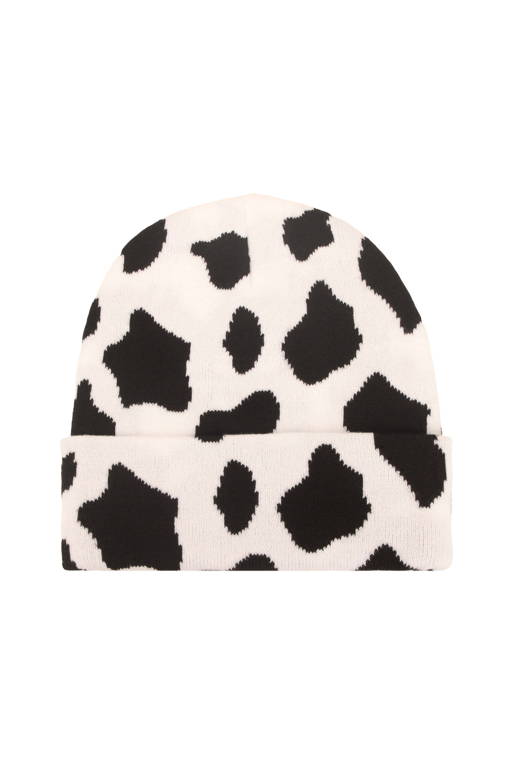 Czapka beanie unisex z nadrukiem krowy i mankietem