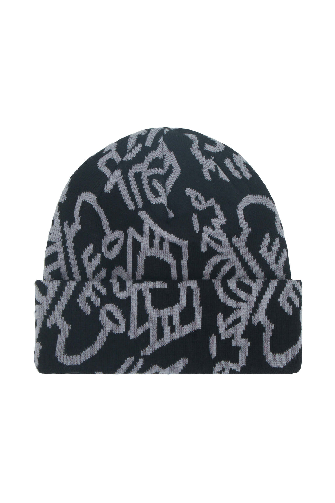 Czapka unisex z grubym mankietem w kolorze czarnym z motywem graffiti