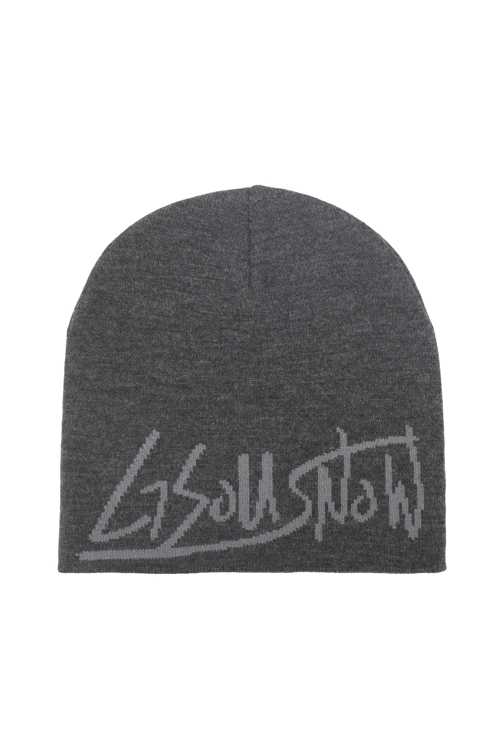 Lekka czapka beanie unisex z ciemnoszarym logo bez mankietu