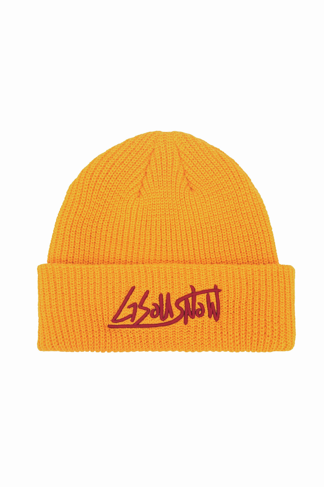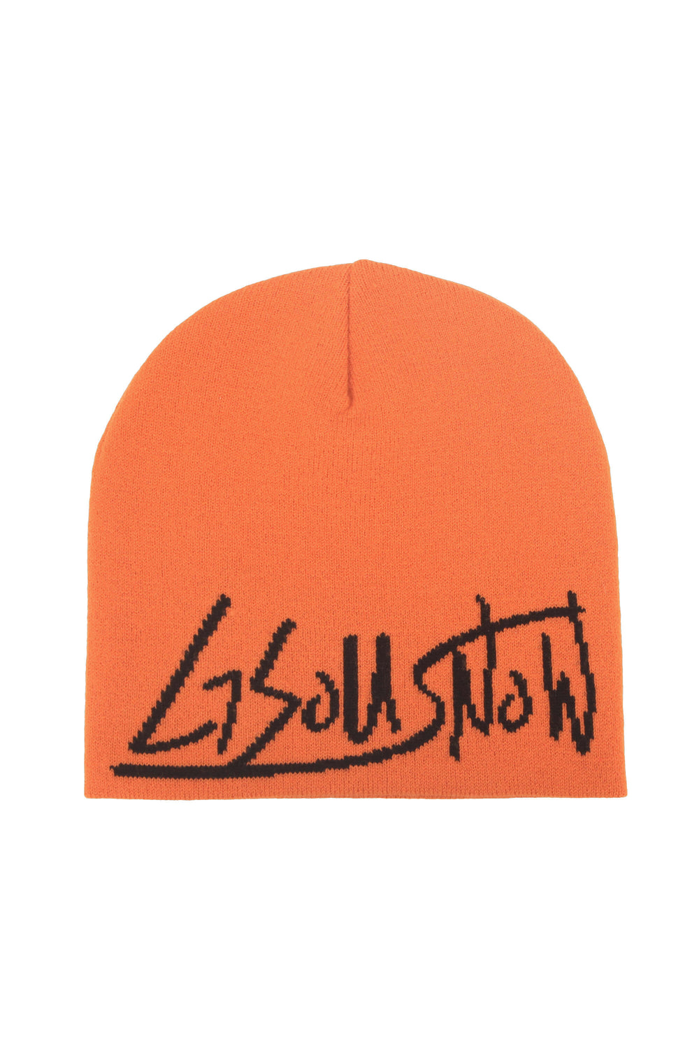Lekka czapka beanie z logo w kolorze pomarańczowym, unisex, bez mankietów