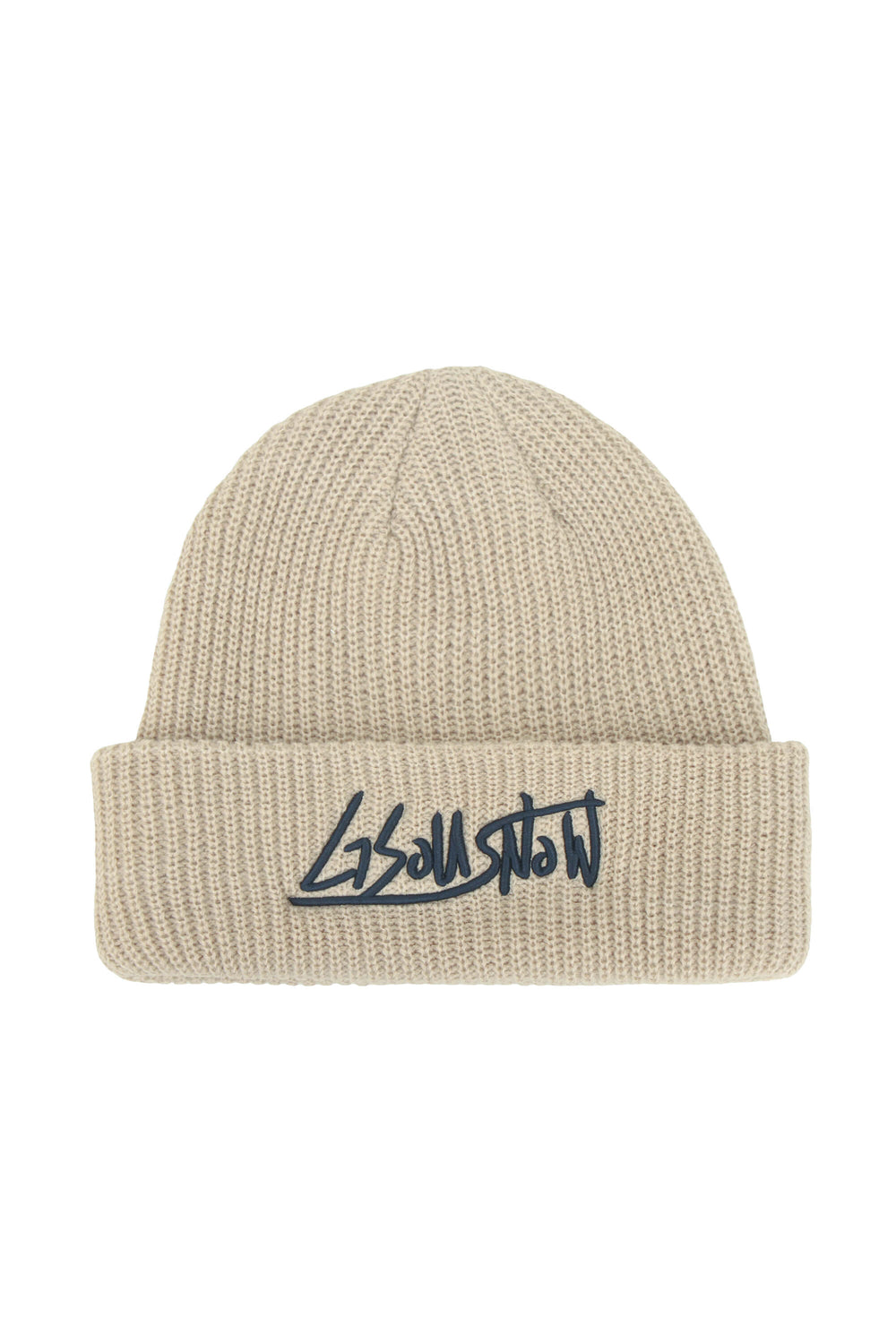 Czapka beanie unisex w kolorze khaki z haftem i mankietem