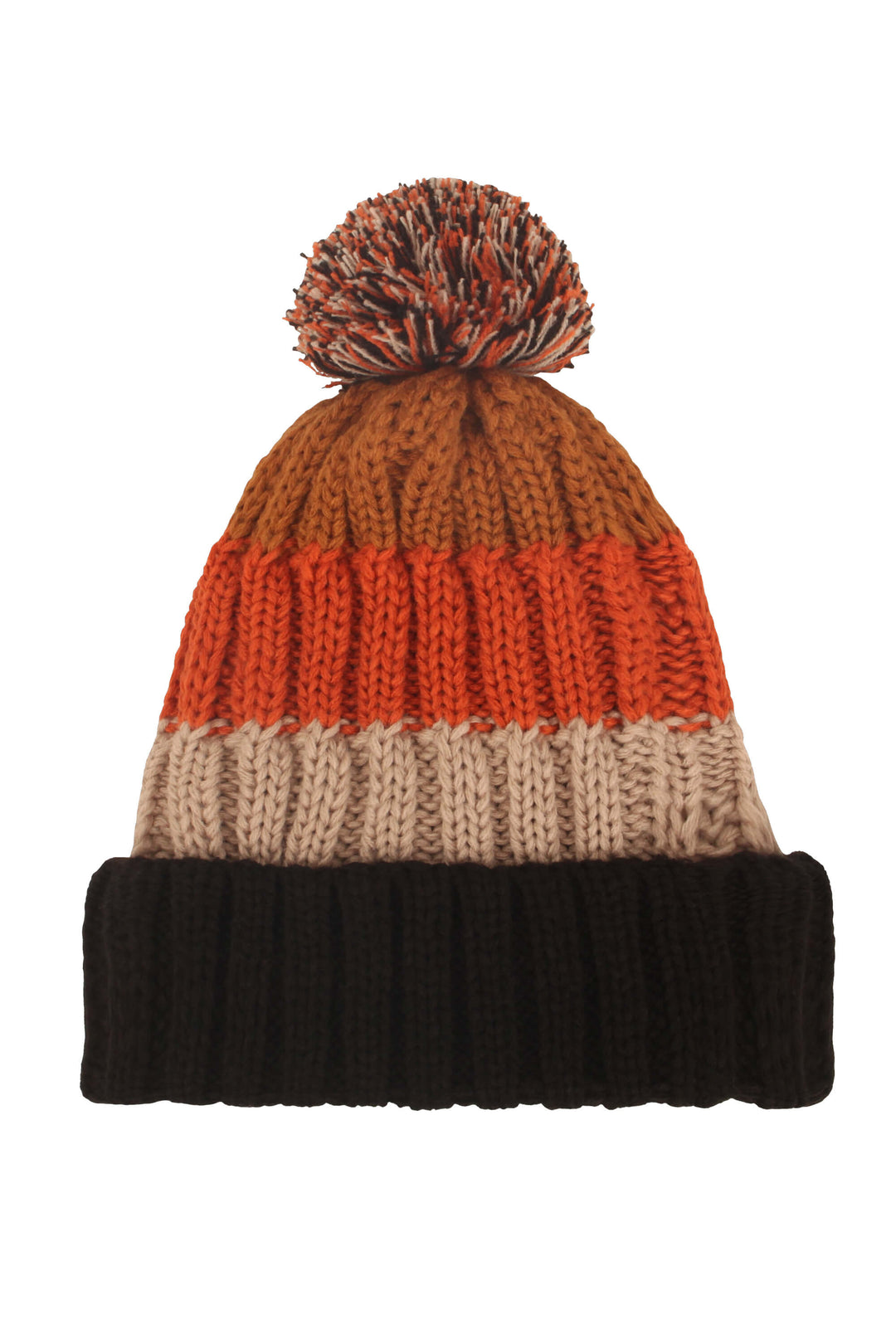 Unisexowa, pomarańczowa czapka z polarową podszewką i mankietem, w bloki kolorów