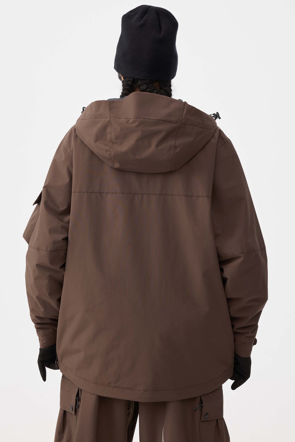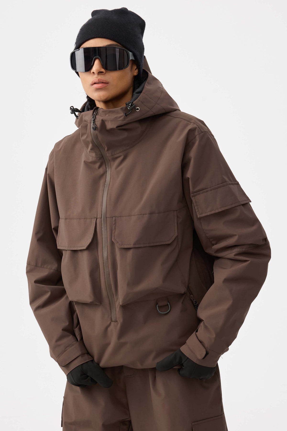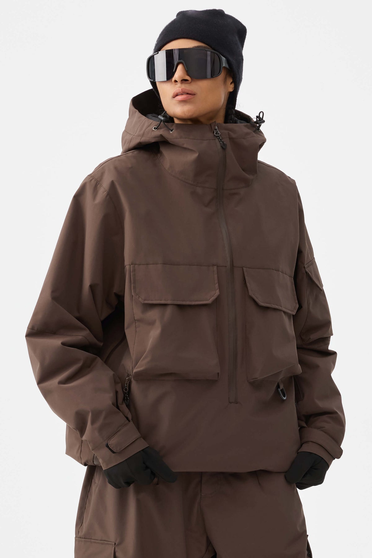 Damska ocieplana kurtka śnieżna Coffee Techwear z zamkiem do połowy