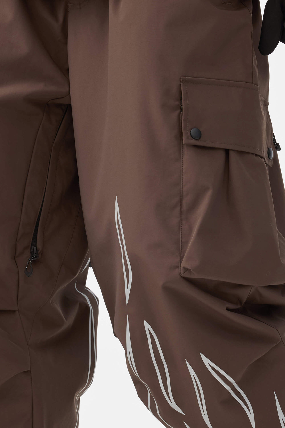 Damskie spodnie narciarskie Baggy Utility z odblaskowym płomieniem w kolorze kawy