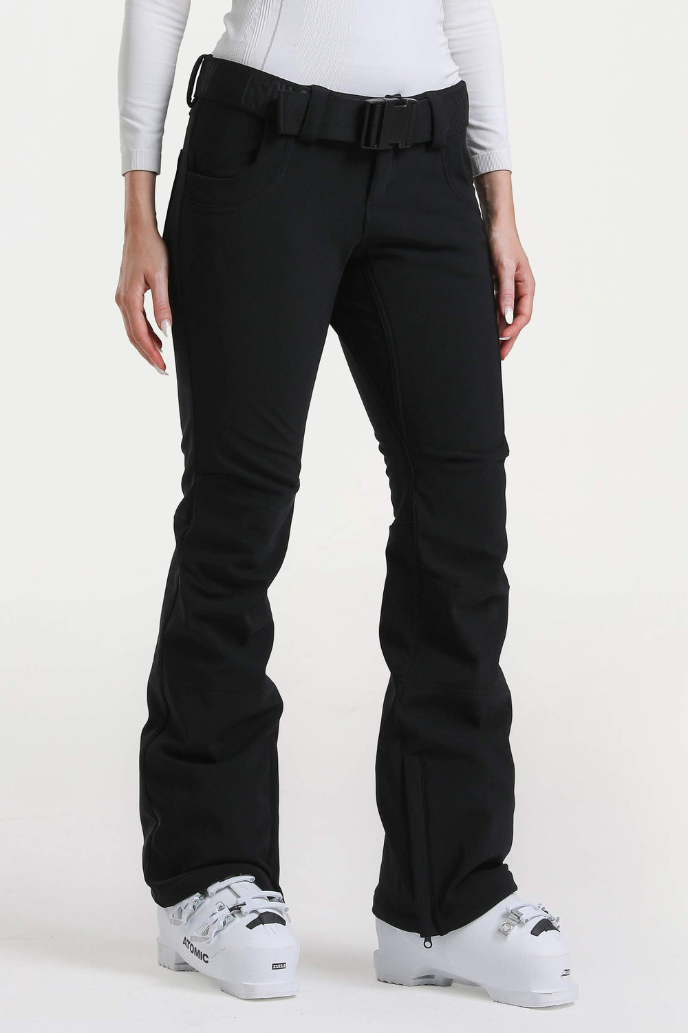 Damskie czarne, dopasowane, wodoodporne spodnie narciarskie z rozszerzanymi nogawkami