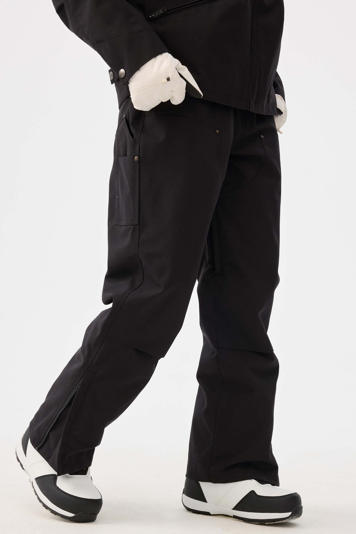 Damskie czarne spodnie śnieżne z prostymi nogawkami i podwójnym przodem
