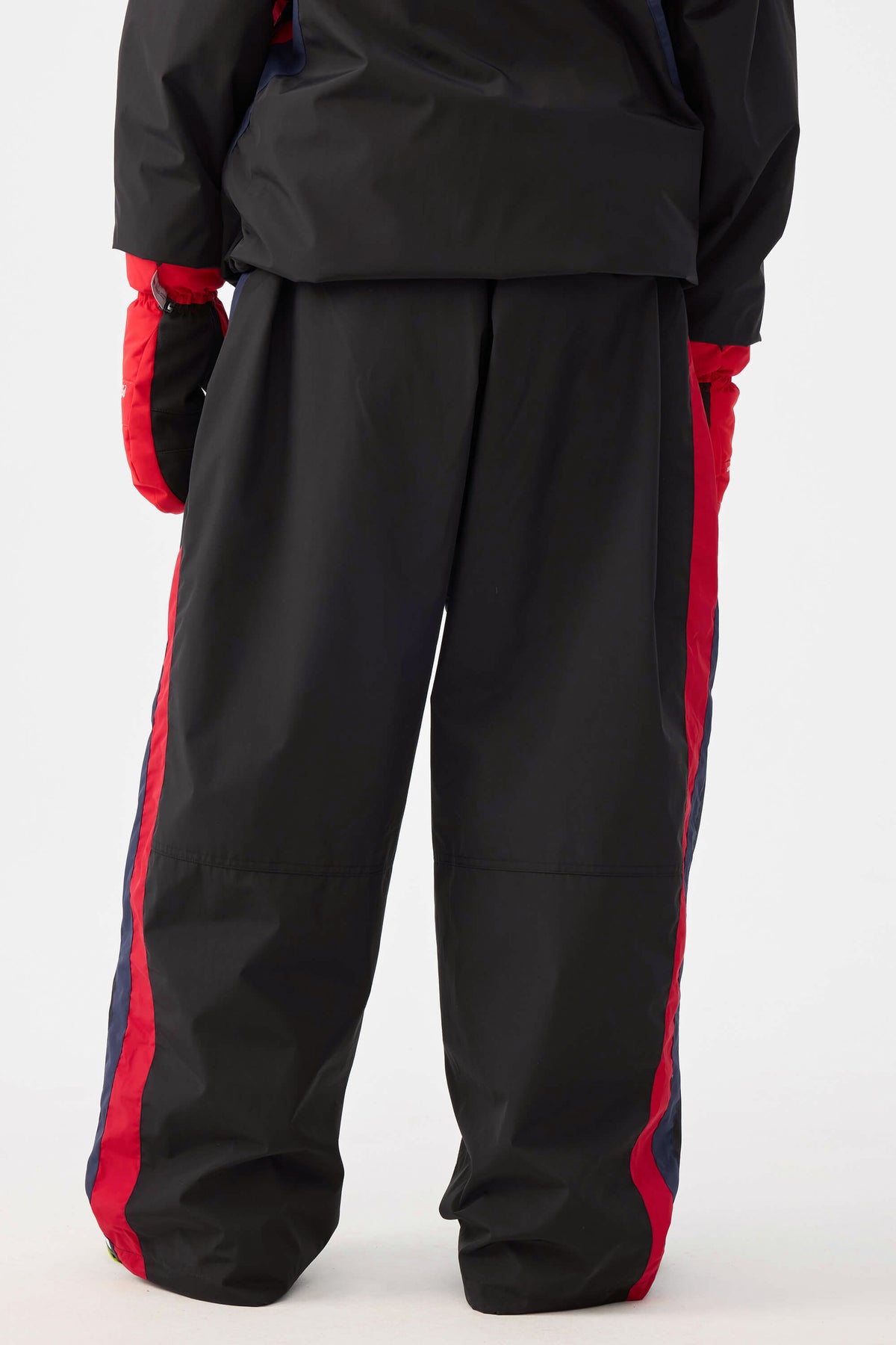 Damskie czarno-czerwone spodnie narciarskie Baggy w stylu retro z lat 90. w blokach kolorów