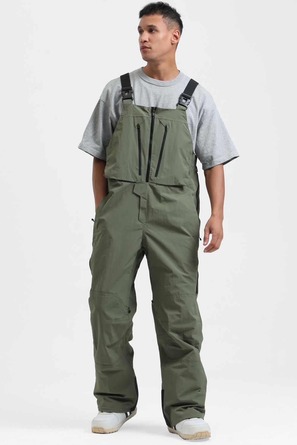 Army Green Easy On/Off Lightweight Waterproof Baggy Snowsports Bibs