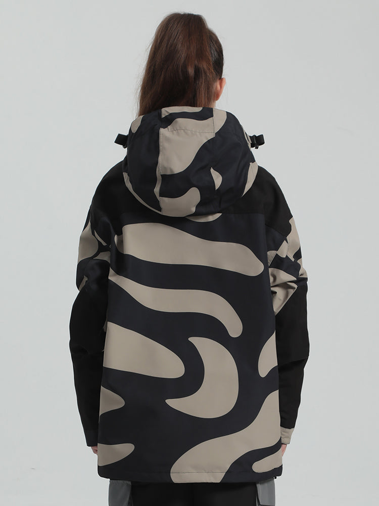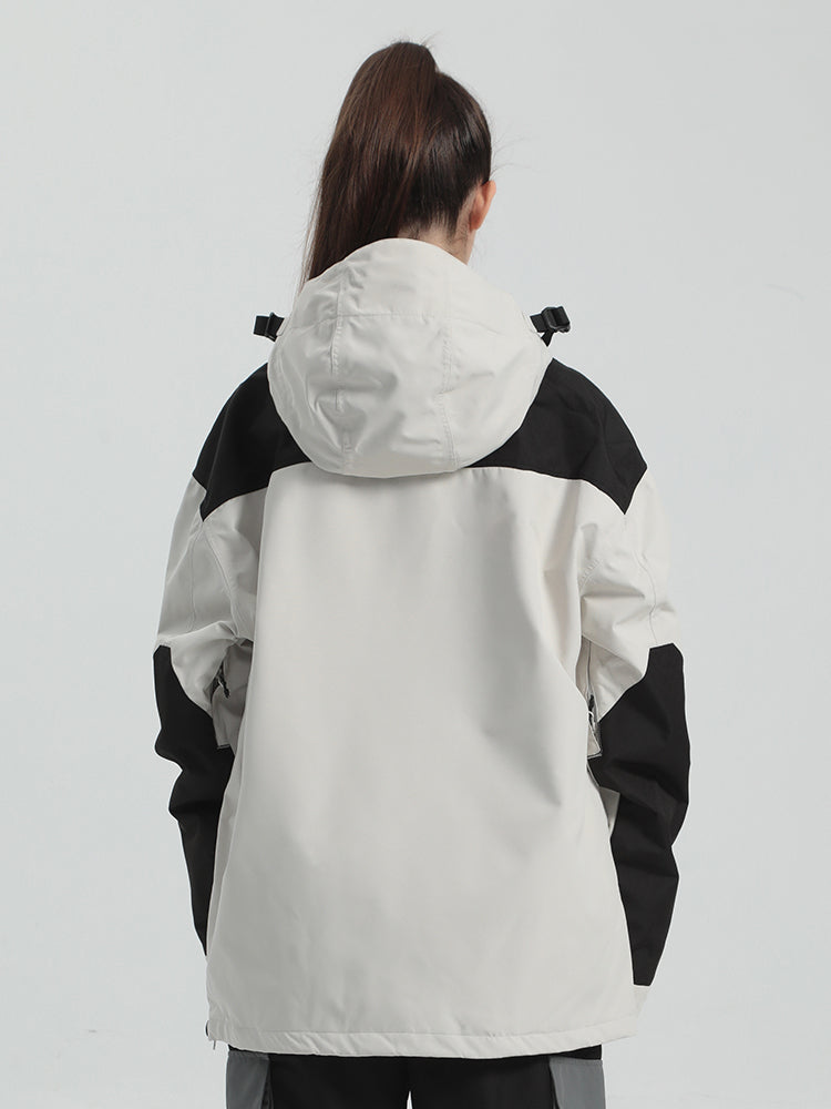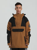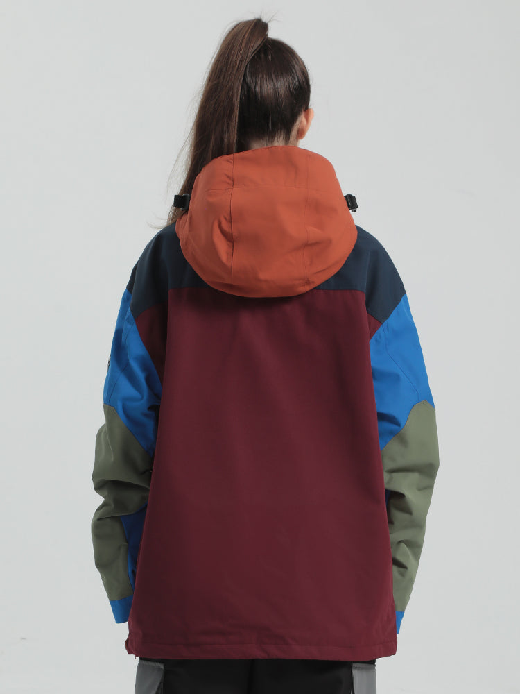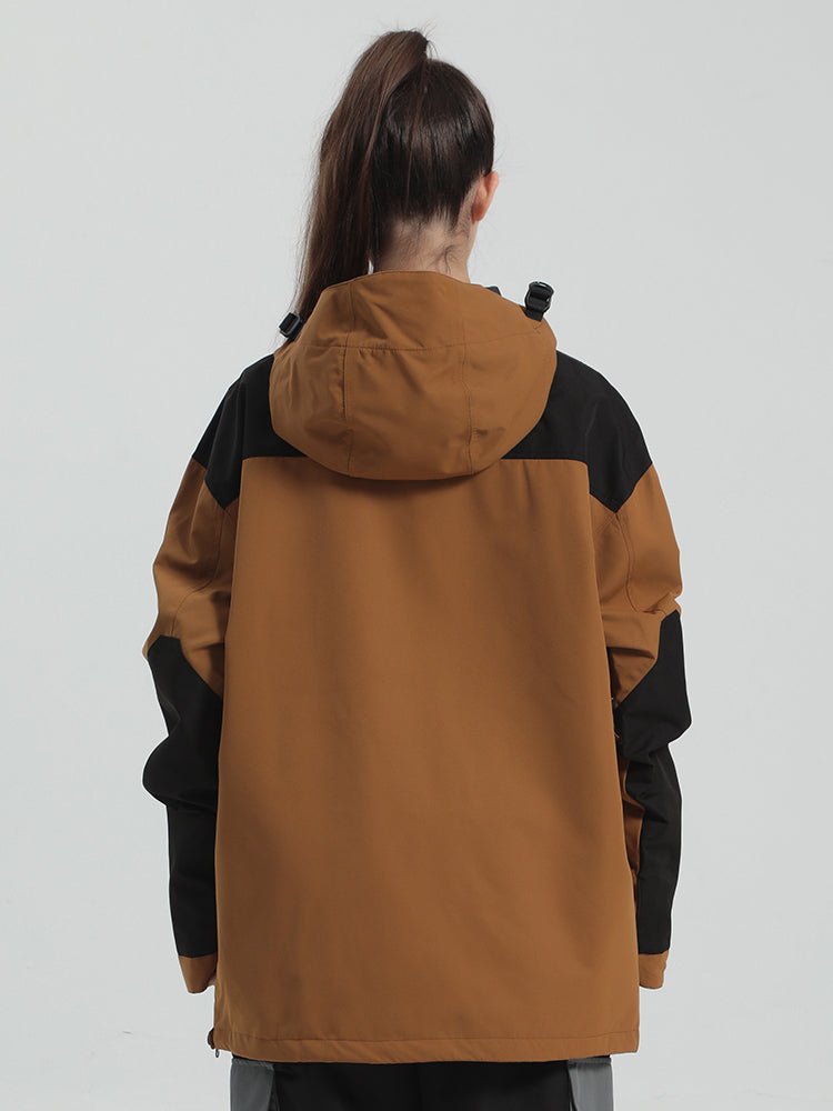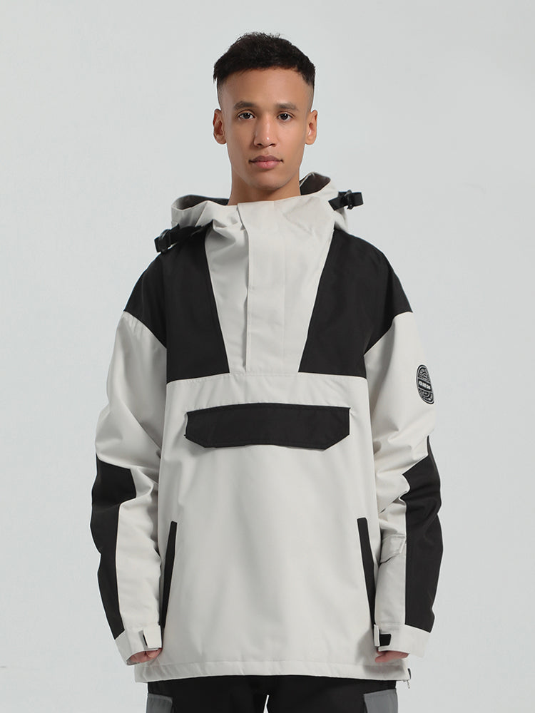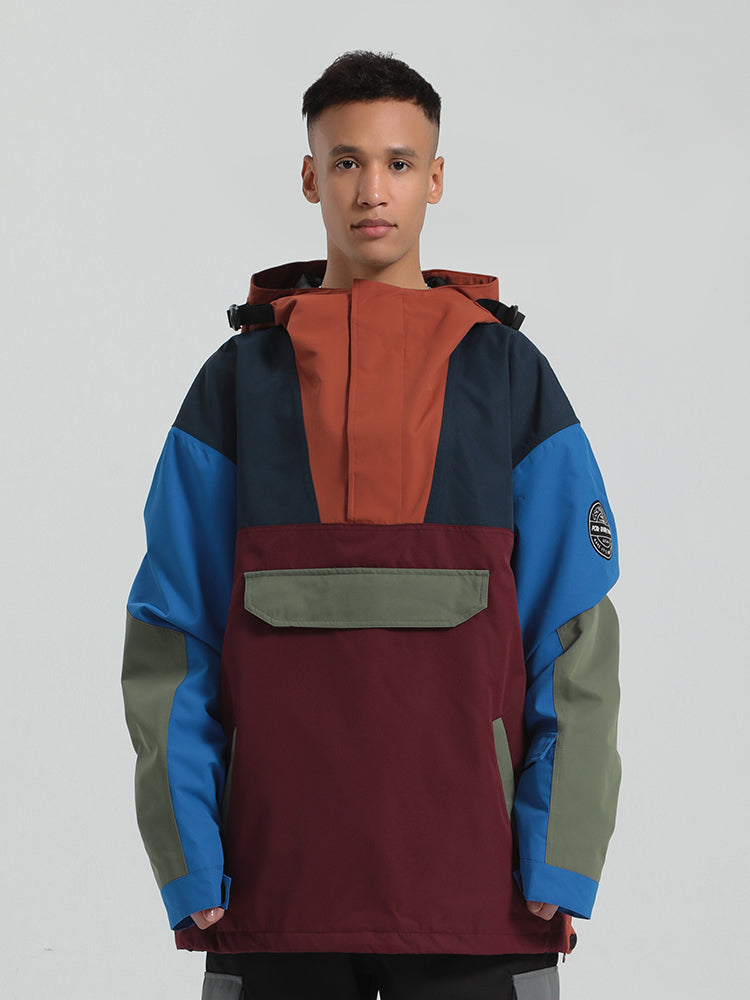 The GSou Snow ski Anoraks feature a color-block design and are both waterproof and warm. They also come with an adjustable hood, adjustable cuffs, and a powder skirt. Right-side underarm zipper vent allows for easy access to the bib, while the hem includes a drawstring and snap buttons.