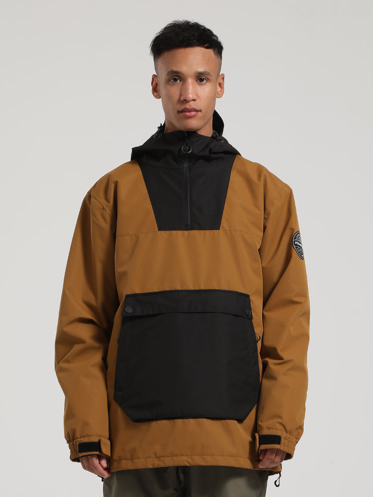 Men's Black & Brown Patchwork Kangaroo Pocket Snow Anoraks