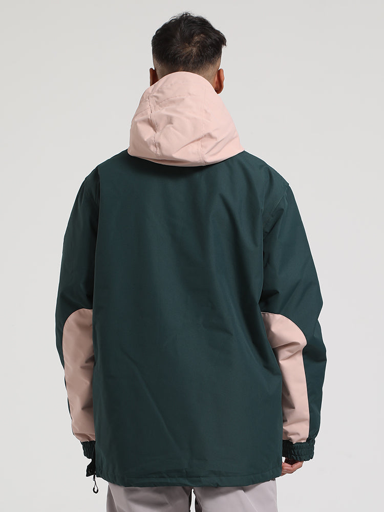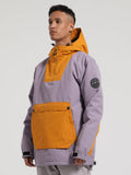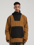 Men's Khaki & Beige Patchwork Kangaroo Pocket Snow Anoraks