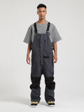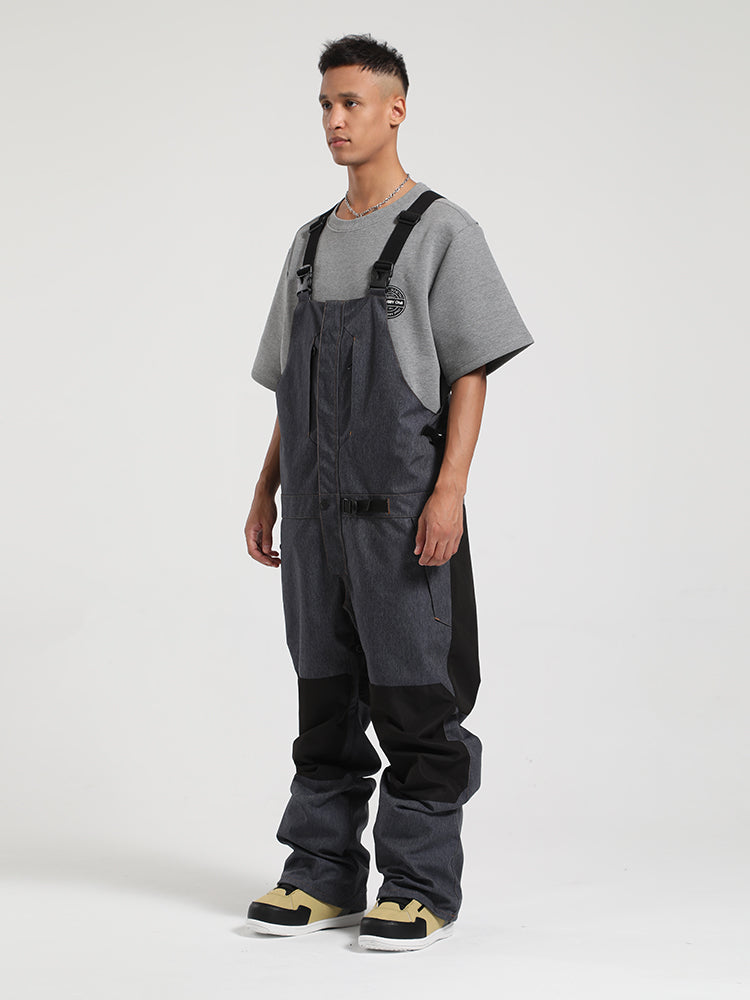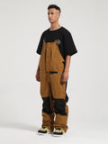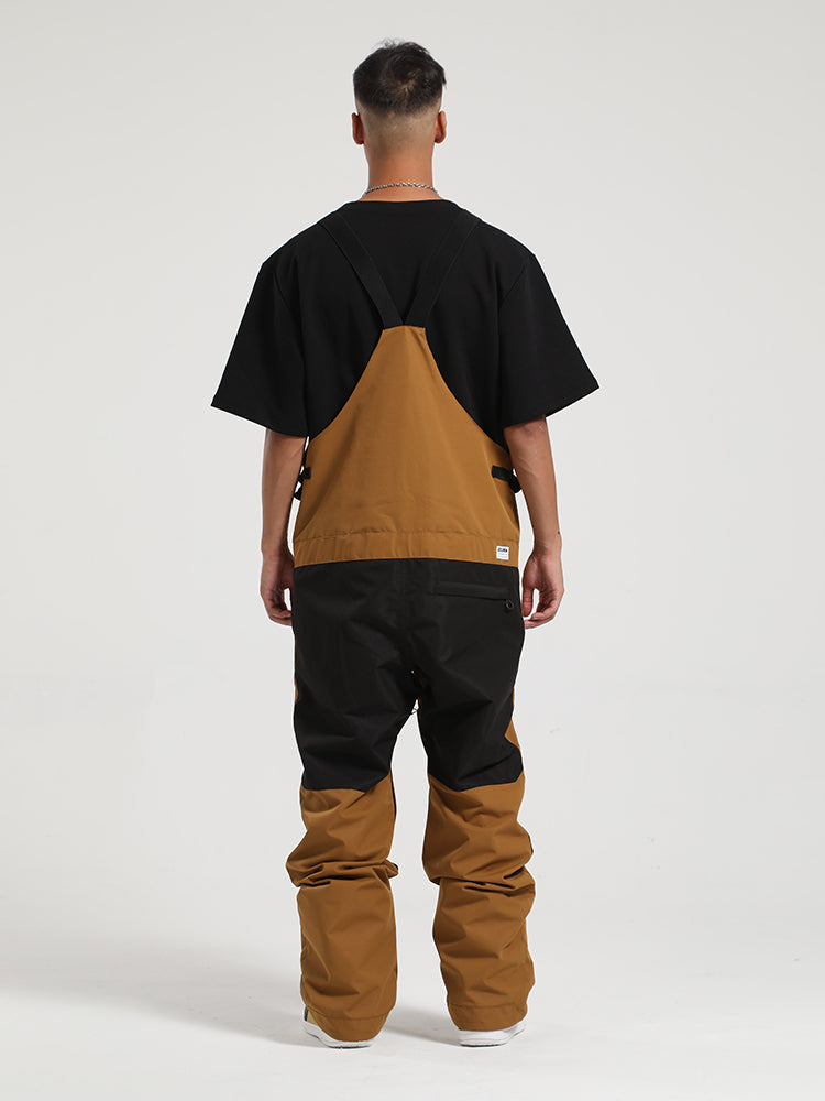Men's Brown Full Front Zip Snow Bibs with Hook & Loop Closure