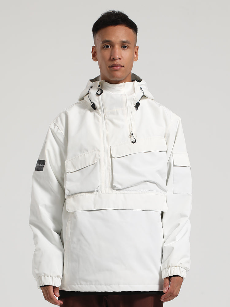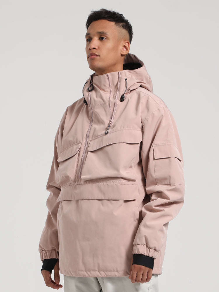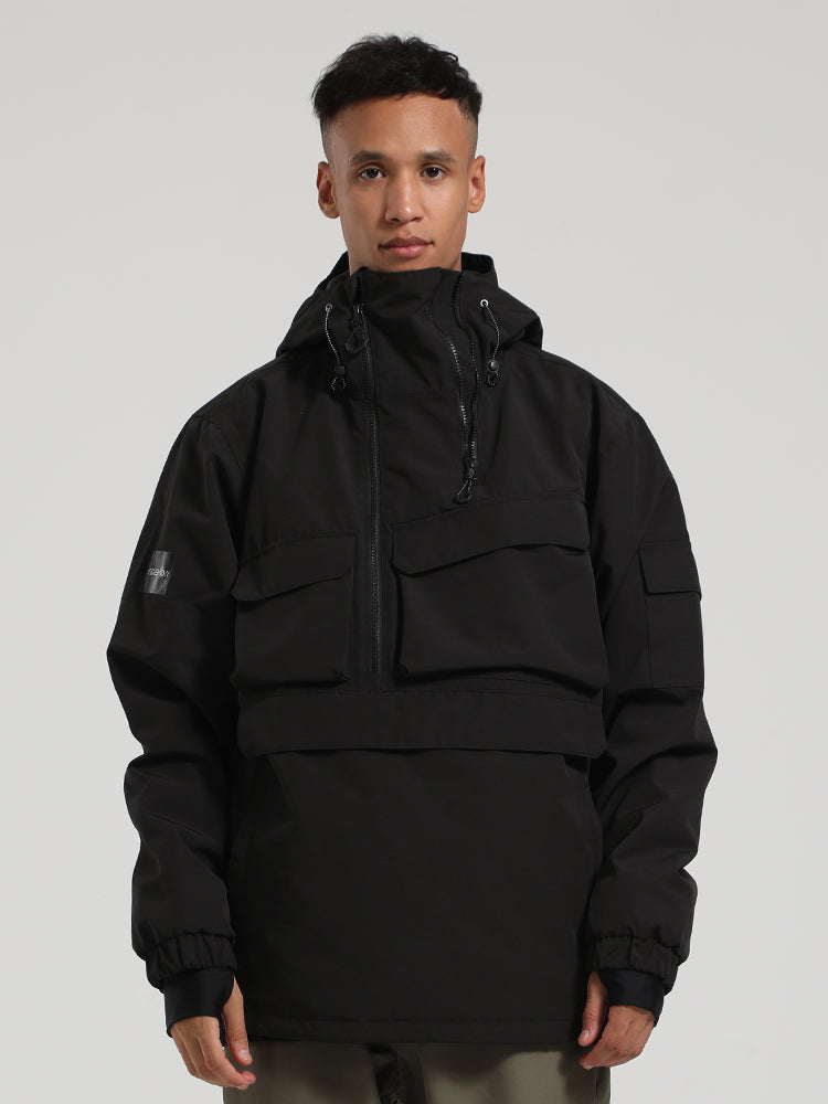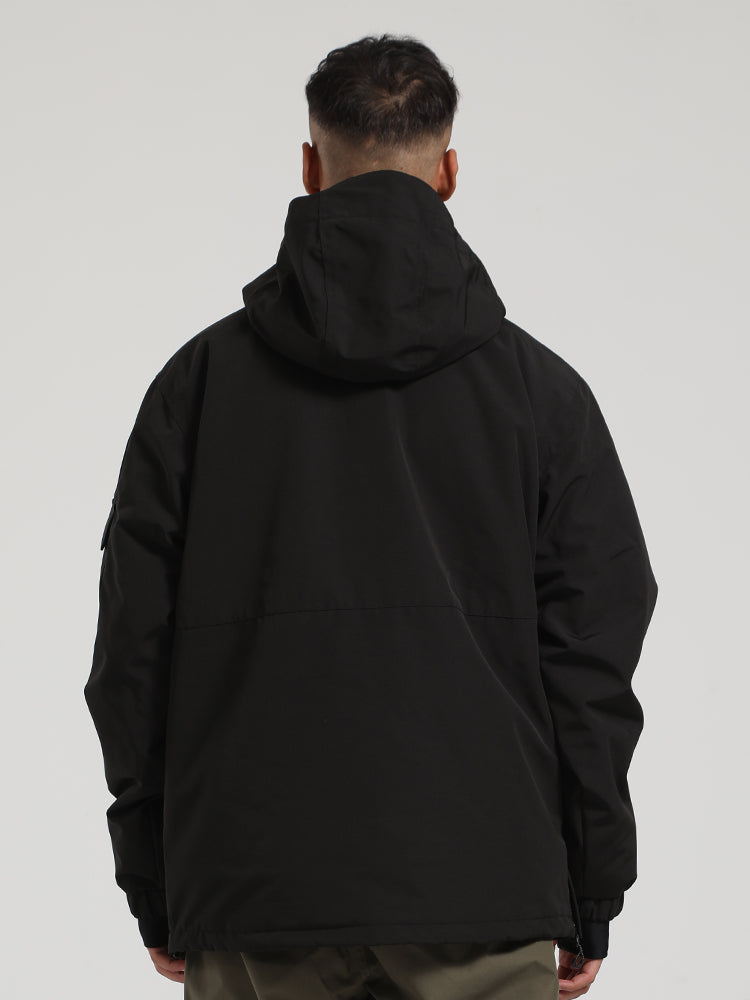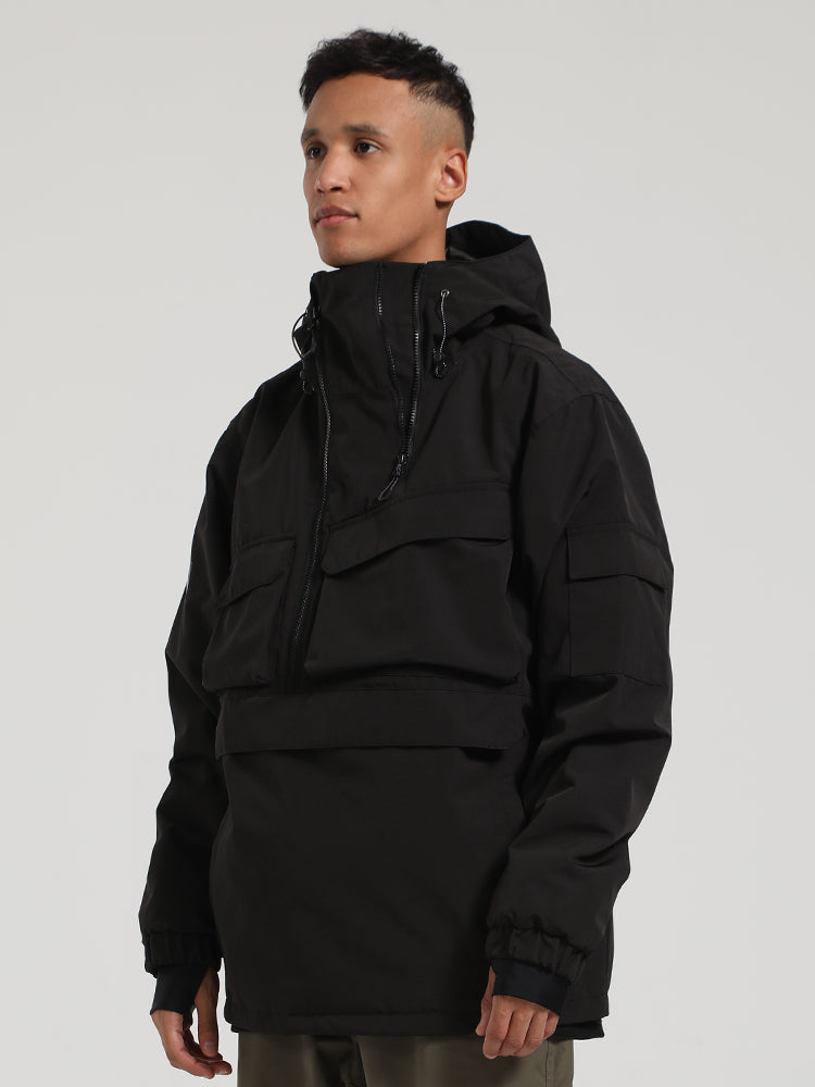 Men's Black Asymmetrical Kangaroo Pocket Waterproof Insulated Snow Anoraks