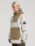 The GSou Snow ski hoodies are made of 100% polyester fabric and feature a vibrant color scheme. A unique aspect is the super-large pocket in the middle of the hoodie, which has waterproof zippers on three sides. The hem includes a windproof skirt with snap buttons.