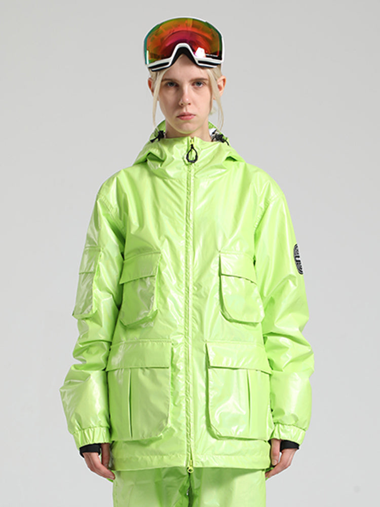 Women's Mint Multi-Pocket Glossy Insulated Waterproof Snow Jackets