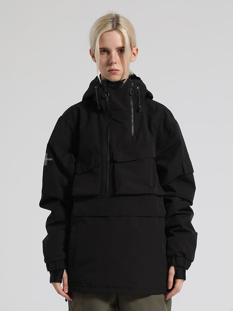 Women's Pink Asymmetrical Kangaroo Pocket Waterproof Insulated Snow Anoraks