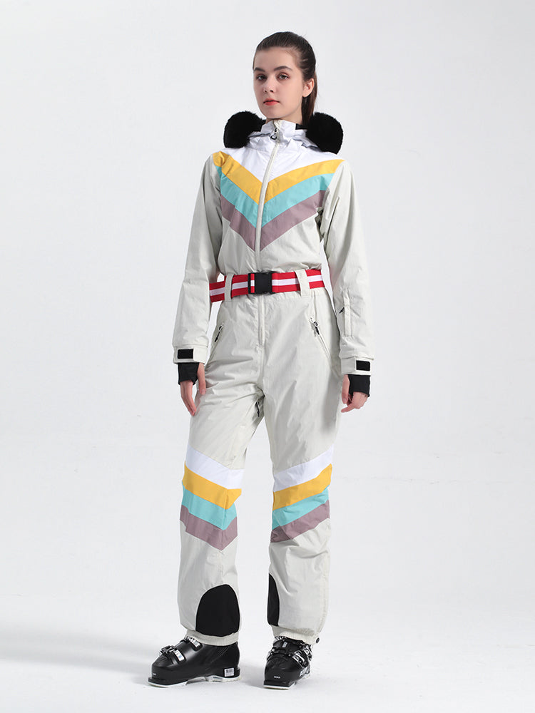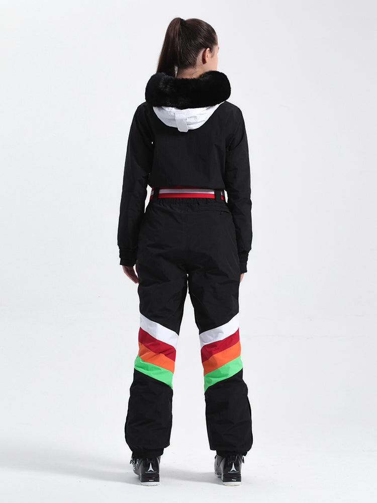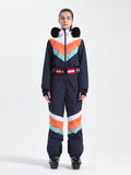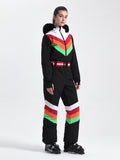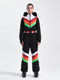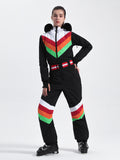 Designed with waterproof fabric and featuring elastic cuffs and hem for a secure fit, this ski suit shields you from the elements during winter sports. Its distinctive color-clashing pattern is a stylish and modern choice that adds an extra edge to your on-slope look.