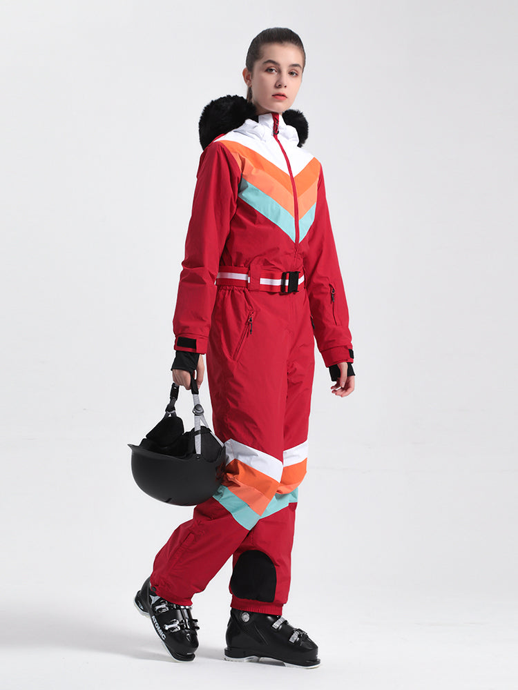 Women's Red Snow-Resistant Ventilated One-Piece Snow Suit